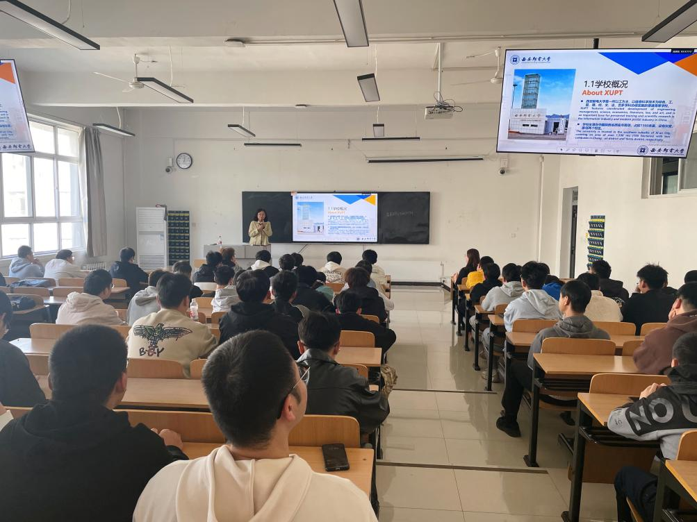 讲座内容丰富多样。首先孙爱晶教授对西安邮电大学进行全面介绍,让同学们对西安邮电大学有初步的认识。学校位于长安区,有着悠久的历史,从服务陕西邮电通信行业的推荐班发展而来,历经多次变革,如今已成为陕西省高水平建设高校和双一流建设高校,也是西北地区的一所亮点高校。在校学生数量众多,包括本科生、研究生和博士生,并且有着优秀的教学和科研平台,其学科科研排名在国内高校中处于领先地位。