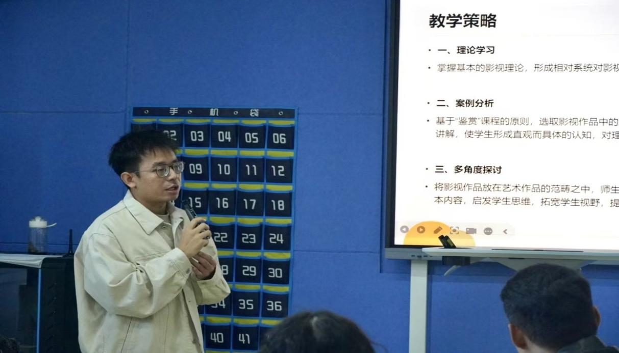第二位磨课教师史燚燃所讲授的《影视鉴赏》将整体分为三个部分,他在15分钟内将“长镜头”这一视听概念的发展史和美学特征进行微课展示,以《公民凯恩》的经典长镜头作为课堂的案例分析。