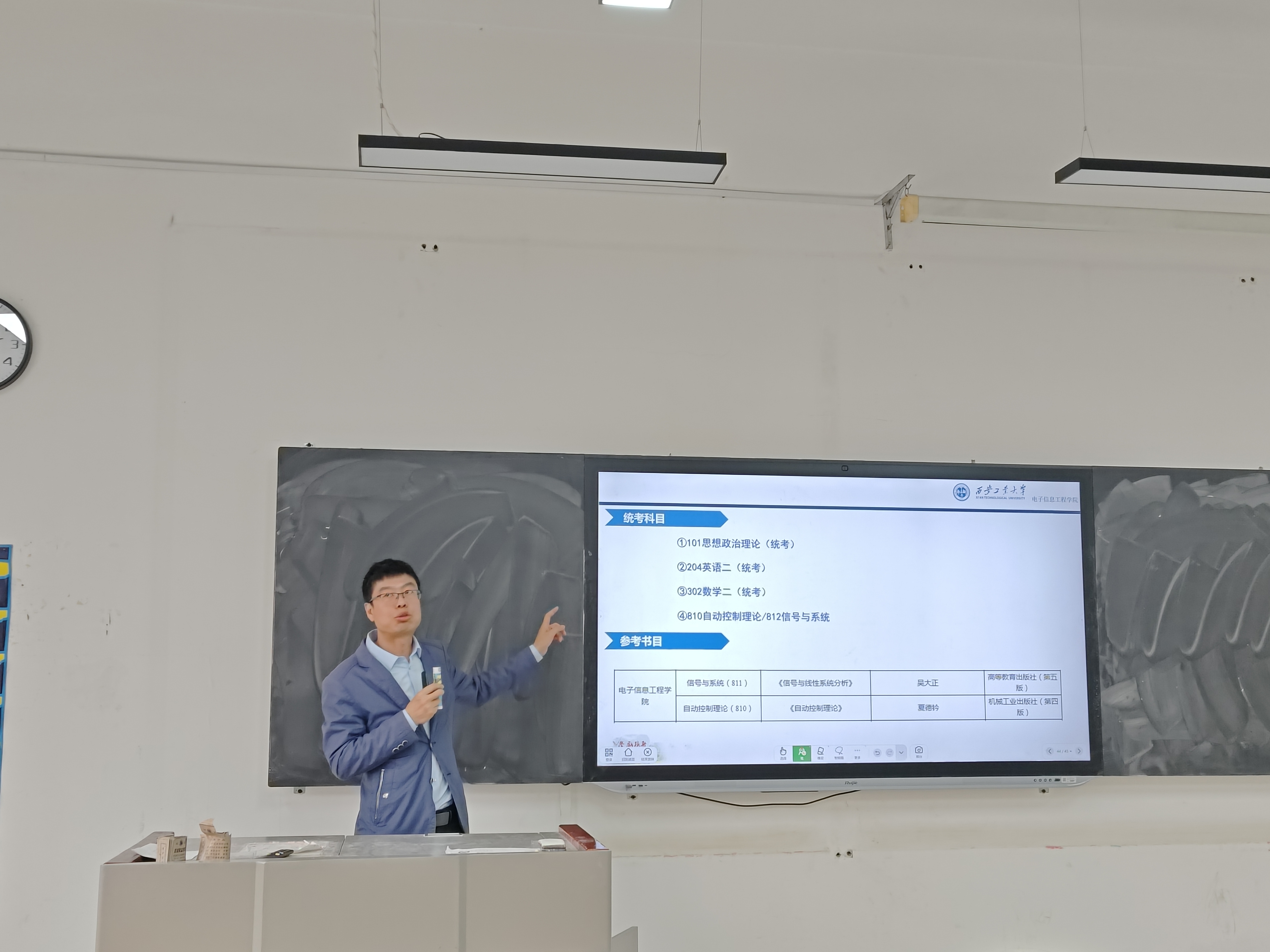 10月30日下午,西安工商学院机电工程学院举办了干货满满的考研讲座,本次活动在鲁班绿智数字产业学院的大力支持下顺利开展。这是机电工程学院考研讲座系列的第三场,特别邀请到了西安工业大学电子信息工程学院院长陈超波教授前来主讲,机电工程学院执行院长韩娟担任主持,电子信息与通信工程系主任李瑞出席,本学院大三、大四和有意愿考研的学生参加。