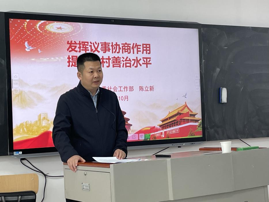 西安市委社会工作部一处副处长陈立新以“发挥议事协商作用,提升乡村善治水平”为题,用扎实的政策理论知识和丰富的工作实践经验深入浅出地阐述了议事协商在乡村基层治理中发挥的重要作用。