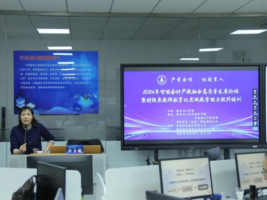 为了积极响应国家教育政策导向,推动智能会计教育的创新发展,我校会计系主任张瑞老师赴京参加了由智能会计产业学院支持的2024年智能会计产教融合高质量发展论坛暨财经类教师数字化实践教学能力提升培训活动。本次活动旨在通过搭建平台,通过深度对话与经验分享,促进高校教师在智能会计领域的数字化教学技能精进,培育兼具理论深度与实践能力的复合型数字财经人才,加速产教融合迈向更高质量发展阶段。来自全国多所高校的优秀教师汇聚一堂,共同探讨智能财务产教融合型课程的建设路径与实践经验。