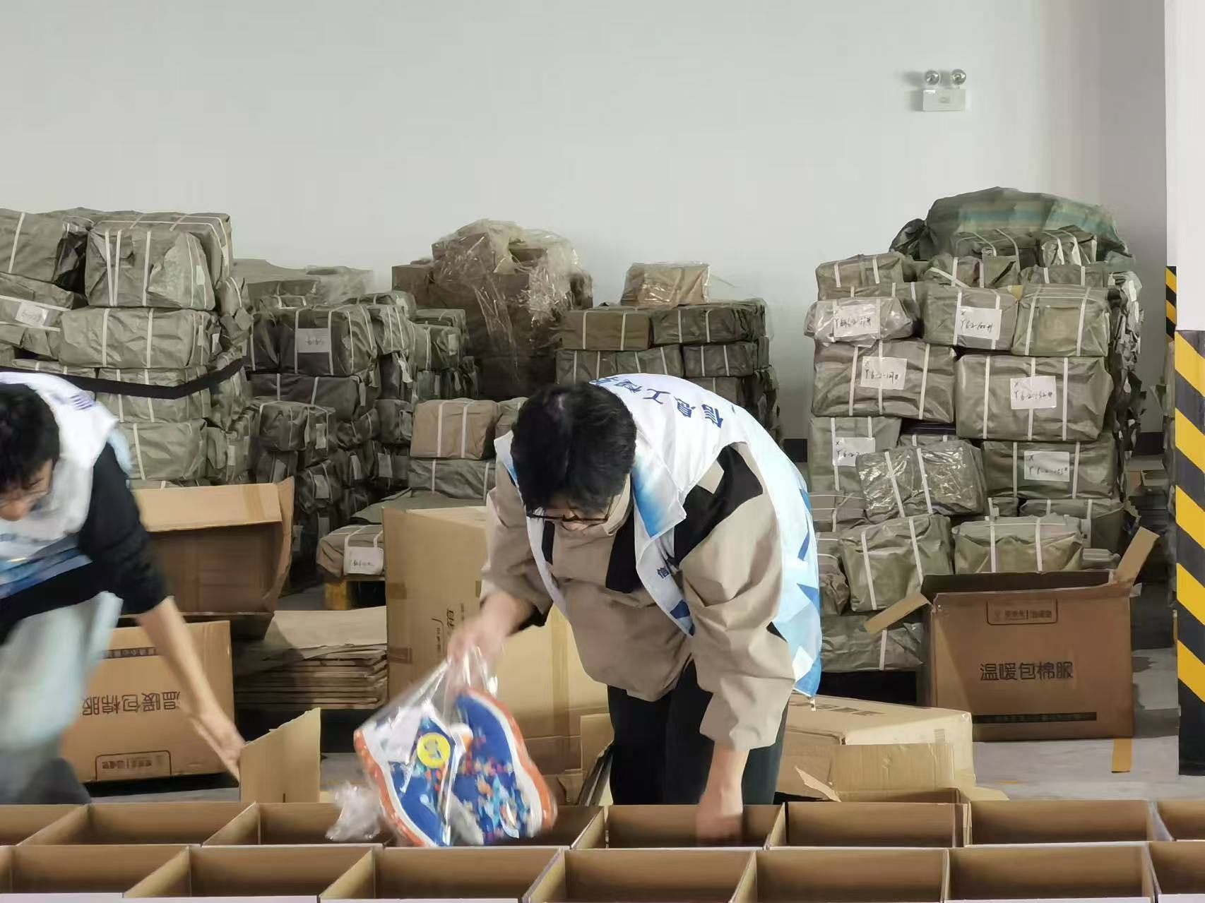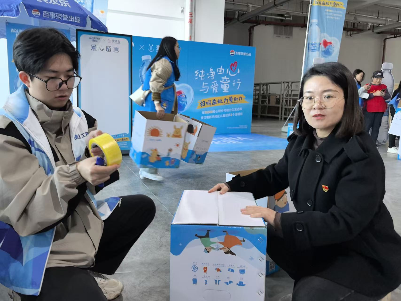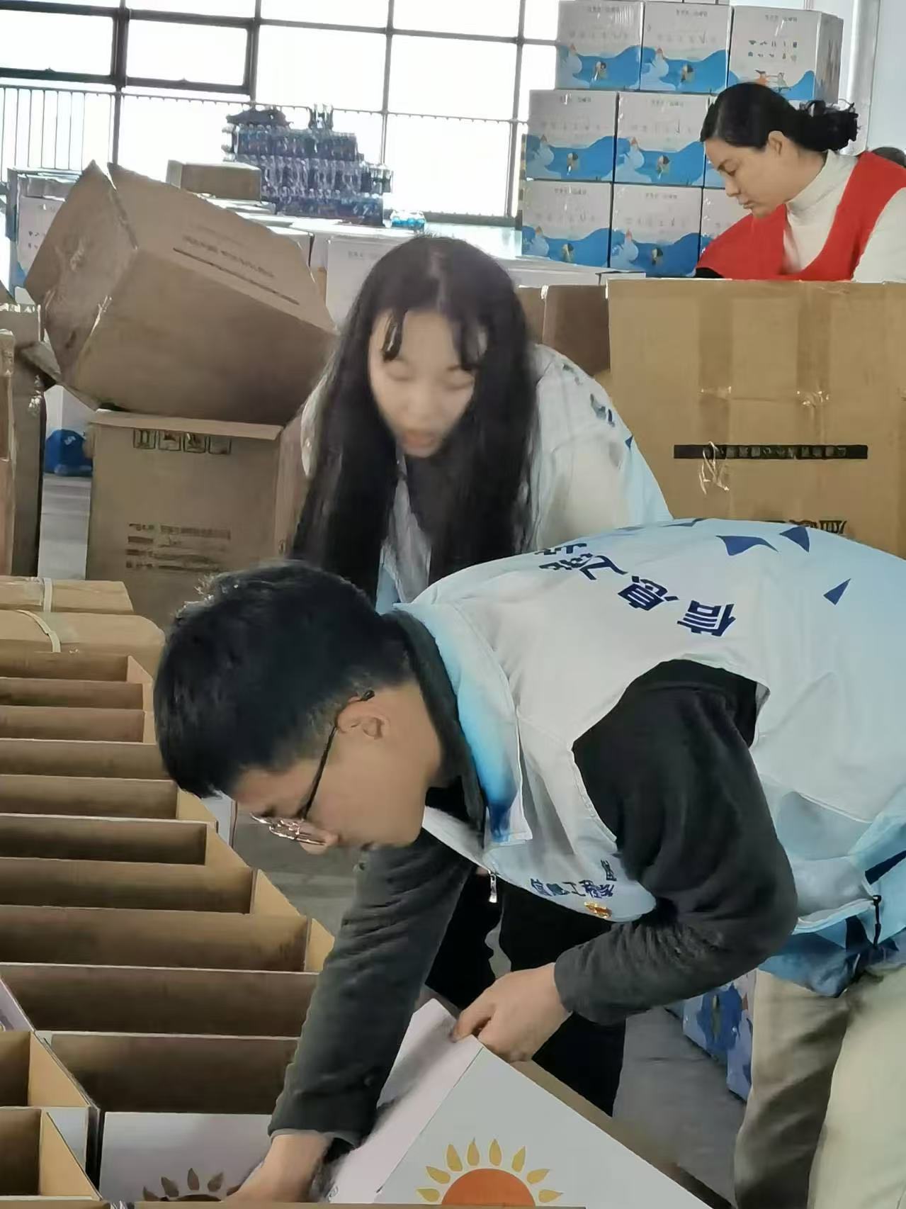 参加此次活动有举办方壹基金代表刘部长,赞助方百事可乐刘经理,西安电视台爱心人士沈先生,同心三秦公益行爱心志愿者,以及西安工商学院学生第四学生党支部的师生党员。随后这次活动的举办方壹基金陕西负责人刘部长宣布此次壹基金温暖包陕西分装活动启动。为了确保温暖包分装活动的顺利进行,支部成员与现场负责人员沟通了基本情况,根据需要进行人员分组和工作分配,随即便迅速地投入到各自的工作当中。支部成员按照物料分装顺序有条不紊地进行分装工作。此次分装要完成2000个温暖包的分装,工作量大,且不能出错,大家分工协作,分装过程认真负责,确保每一个细节都做到位。进过8个多小时的奋战,终于将2000个温暖包分装完毕。