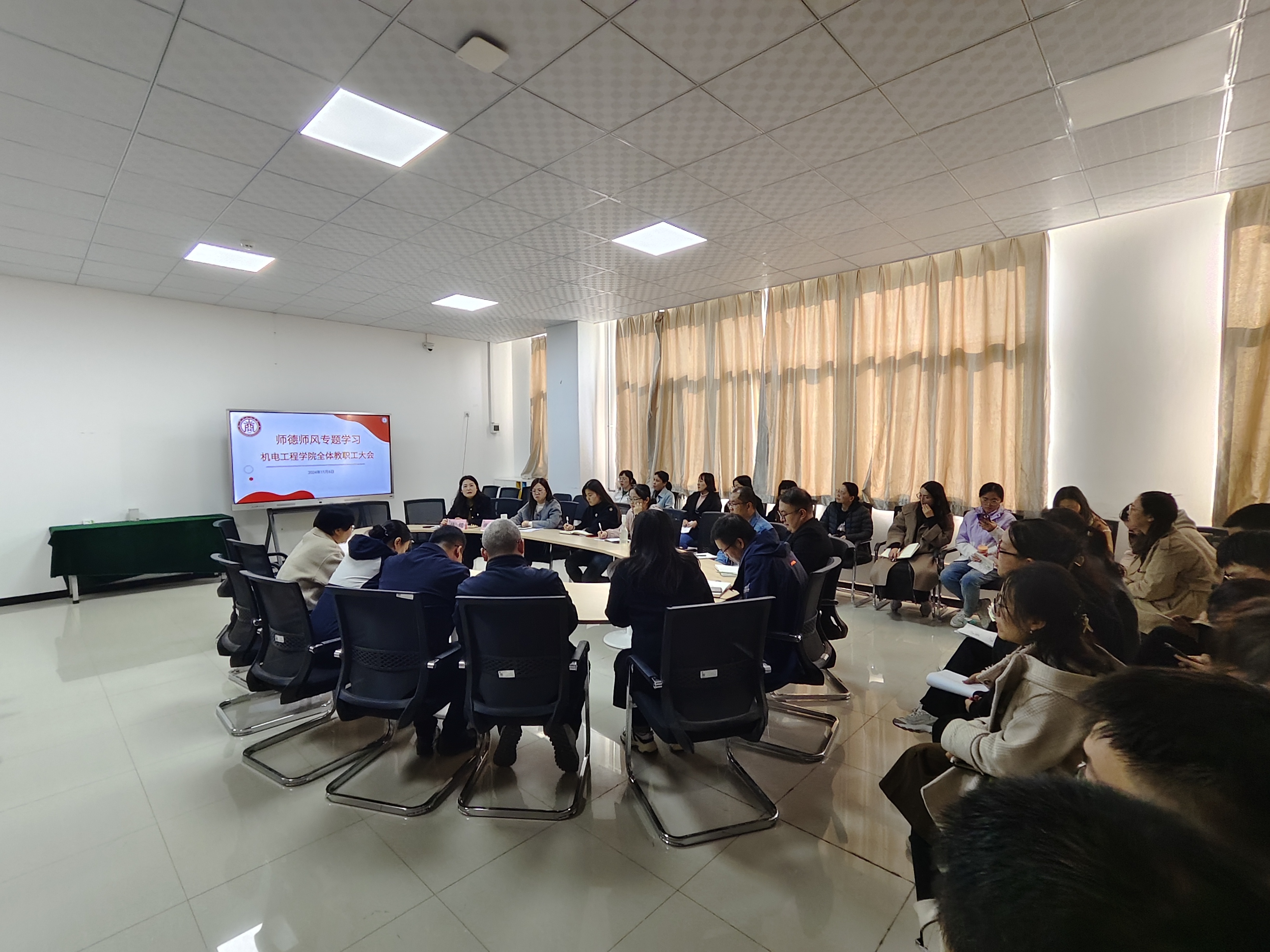 为进一步加强师德师风建设,全面提升教师思想政治素质和职业道德水平,西安工商学院机电工程学院于11月6日下午召开全体教职工大会,深入开展师德师风专题学习活动。机电工程学院执行院长韩娟、教学副院长薛凤凤及机电工程学院全体教职工齐聚一堂,共同参加此次会议。