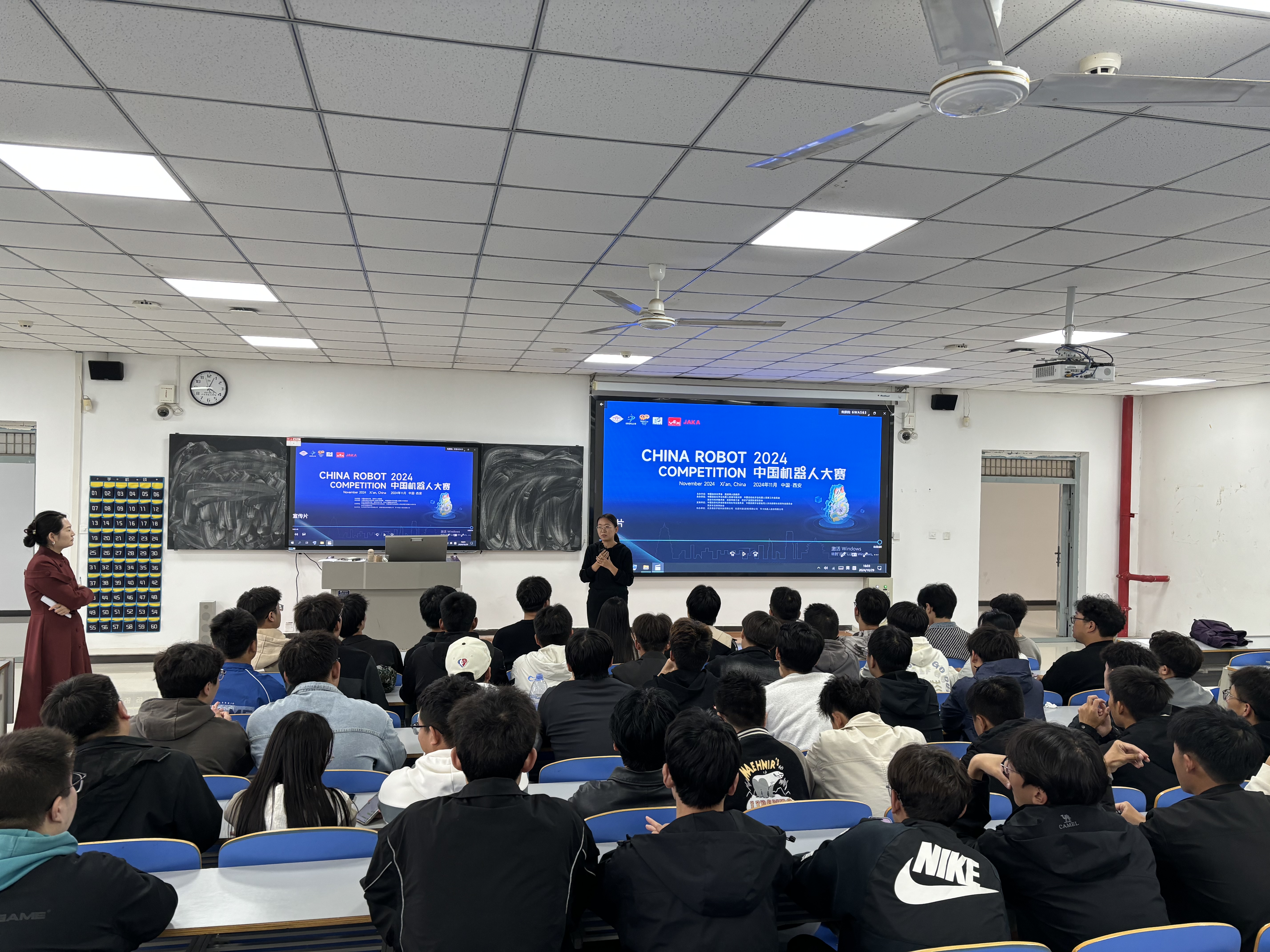 10月30日-11月3日,2024中国机器人大赛在陕西省西安市国际会展中心拉开帷幕。大赛由中国自动化学会、西安市人民政府主办。在这场科技感十足的赛事背后,我校机电工程学院师生组成的100名志愿者团队以高度的热情和专业的素养积极投入其中,并担任着赛事的副裁判、记分员等重要岗位,成为大赛一道亮丽的风景线,部分工作场景被央视报道。