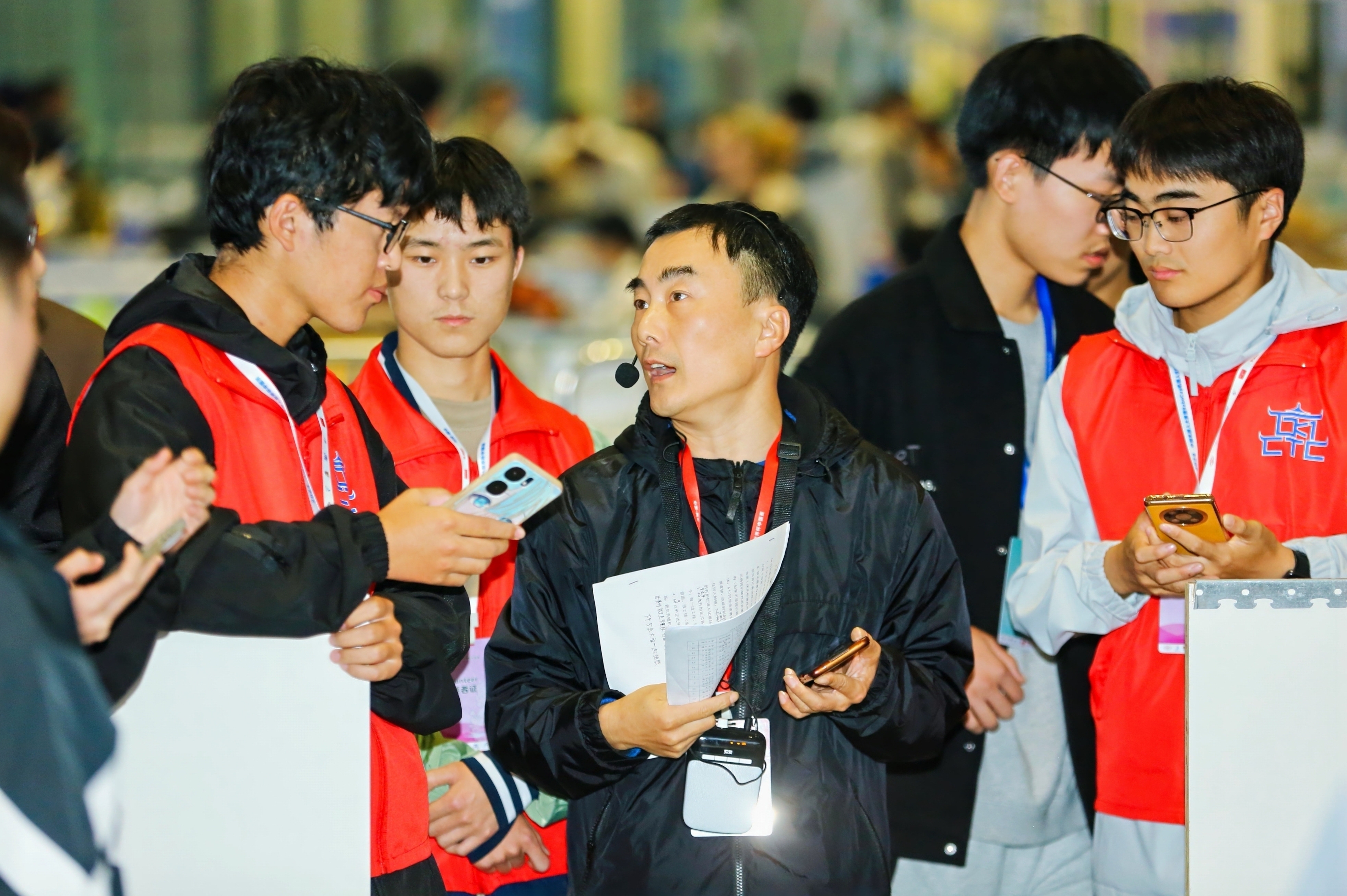 值得一提的是,面对赛事中的各种复杂情况,我校师生志愿者展现出了非凡的应变能力。在比赛过程中,由于机器人数量众多且运行频率高,偶尔会出现信号干扰等问题。我校师生志愿者们迅速反应,协助技术人员查找问题根源,并积极参与解决,使得比赛能够在最短的时间内恢复正常,他们的专业和冷静保障了大赛的高质量推进。
