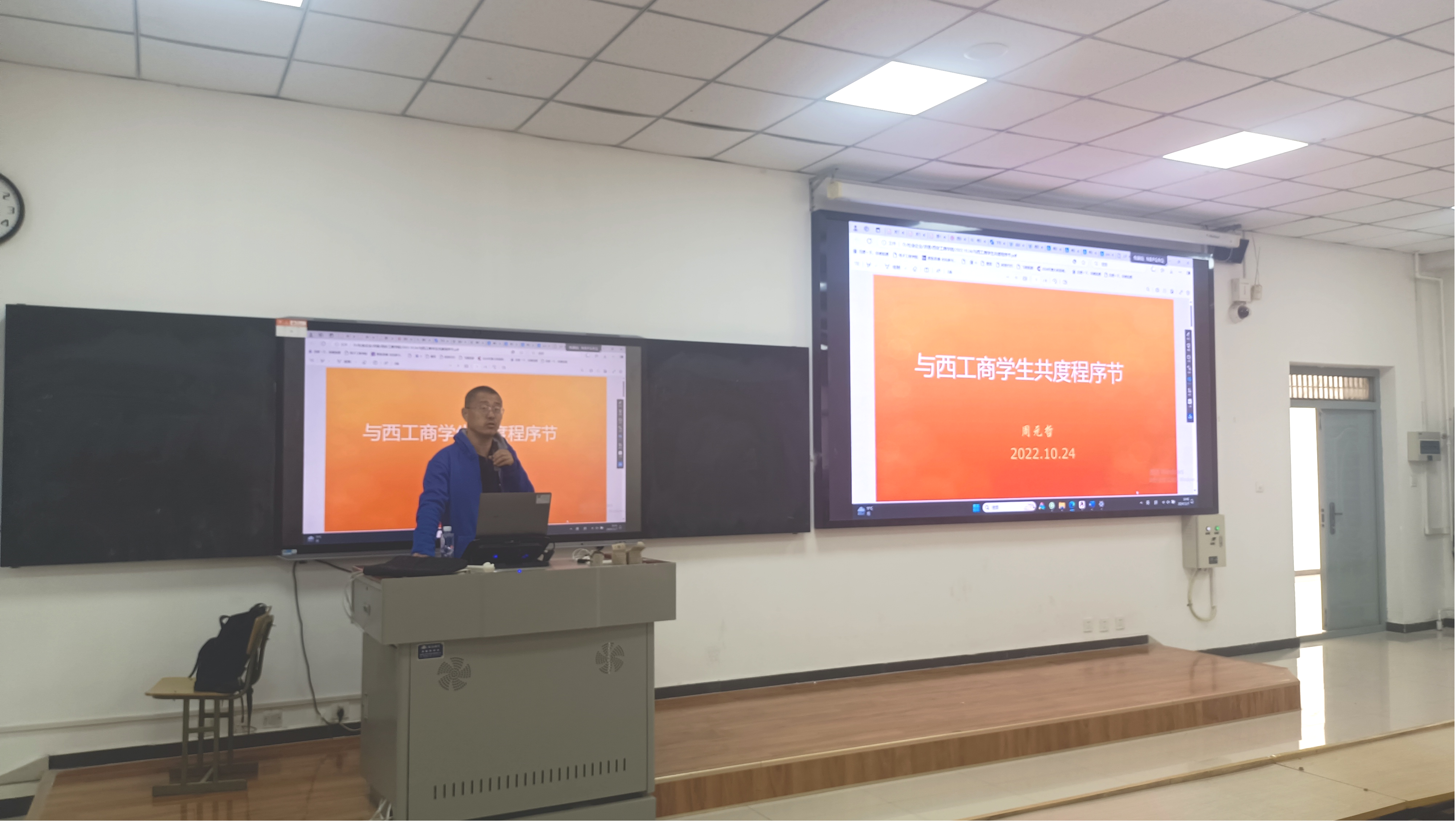 周元哲老师首先回顾了自己在2022年10月24日线上参加的“西安工商学院首届1024计算机程序节”的情景,对西安工商学院师生对计算机专业和事业的热爱与执着给予高度认可。
