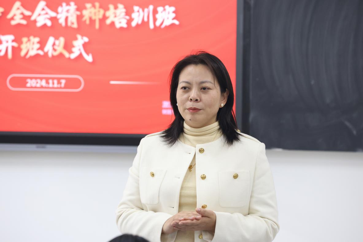 培训开始前,党委副书记杨红雨同志对党的二十届三中全会的背景、主要内容和重要意义进行了深入解读,引导参会人员认真学习全会精神,增强对党的政策以及战略目标连续性的认识,她指出全会不仅指明了国家未来的发展方向,也为我们个人的成长和学习提供了宝贵的思想资源和行动指南。并对后期西安工商学院骨干人员、党员学习贯彻党的二十届三中全会精神培训班日程进行安排。
