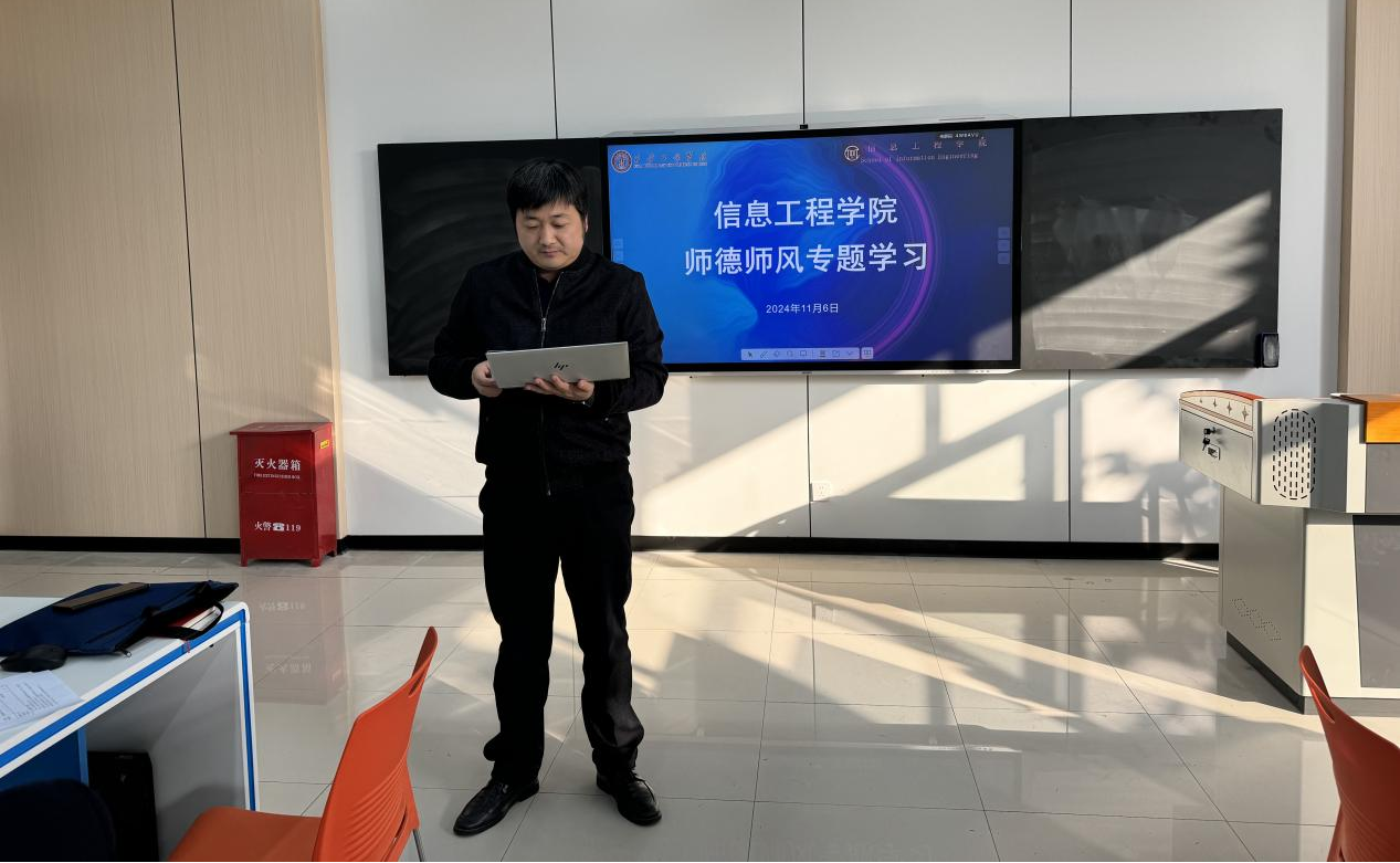 为进一步加强学院师德师风建设,规范教师职业行为,引导广大教师牢记立德树人使命,争做新时代党和人民满意的好老师。11月6日下午,信息工程学院党总支在实验楼301会议室召开师德师风学习活动。会议由党总支书记李恒同志主持,全体党员参加了会议。
