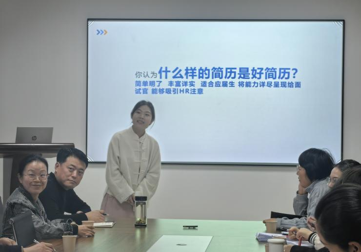 活动期间,党委宣传部杜孟轲老师围绕如何做好一份简历进行了教学展示。主要讲述了简历设计要点、简历内容要素、简历美化等内容。