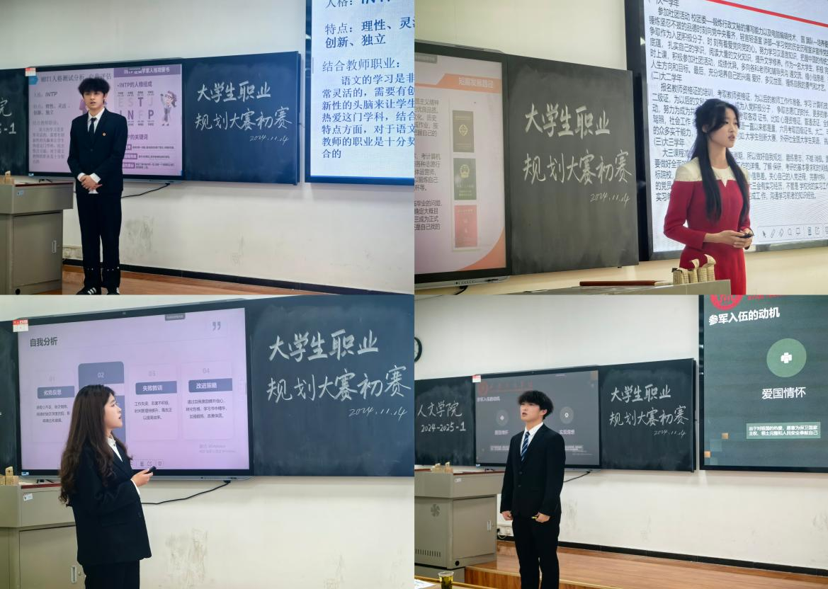 11月14日下午14:00,西安工商学院人文学院在1-510教室成功举办大学生职业规划大赛学院初赛。此次大赛结合了学院的专业特色与社会需求,为莘莘学子提供了一个清晰的职业发展方向和平台。