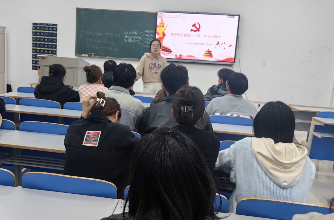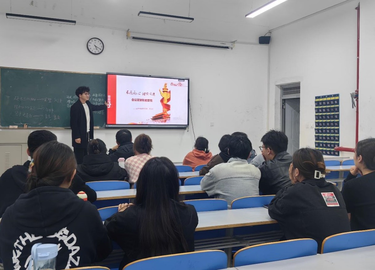 在强国建设、民族复兴的关键时期,党的二十届三中全会为新时代的改革发展指明了方向。为深入学习贯彻会议精神,经济与管理学院学生第一党支部于11月19日下午在教学楼2-507教室开展了党的二十届三中全会专题学习教育,本次会议由党支部书记何佳乐主持。