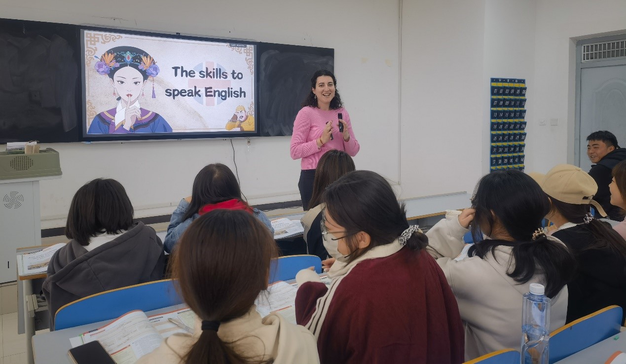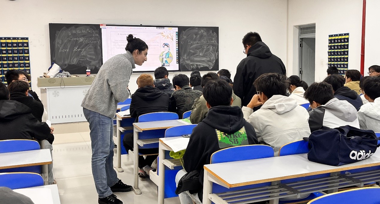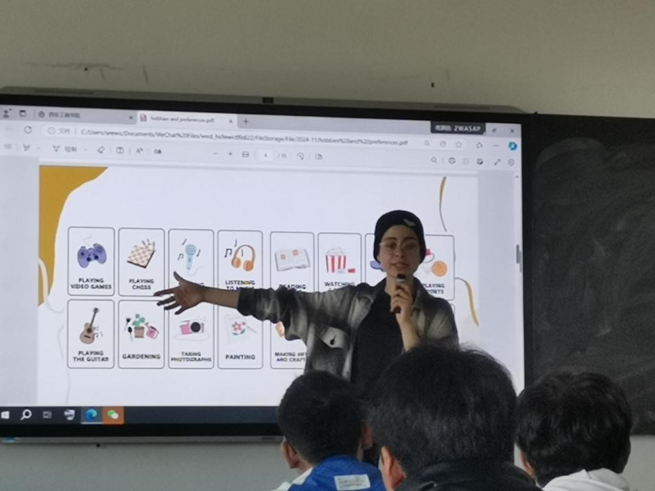 外教Bego教学经验丰富,非常喜欢中国文化,她的课件充满中国元素。当她打开课件时,浓郁的中国风既给同学们带来了一份惊喜,又立刻拉近了与学生的距离。