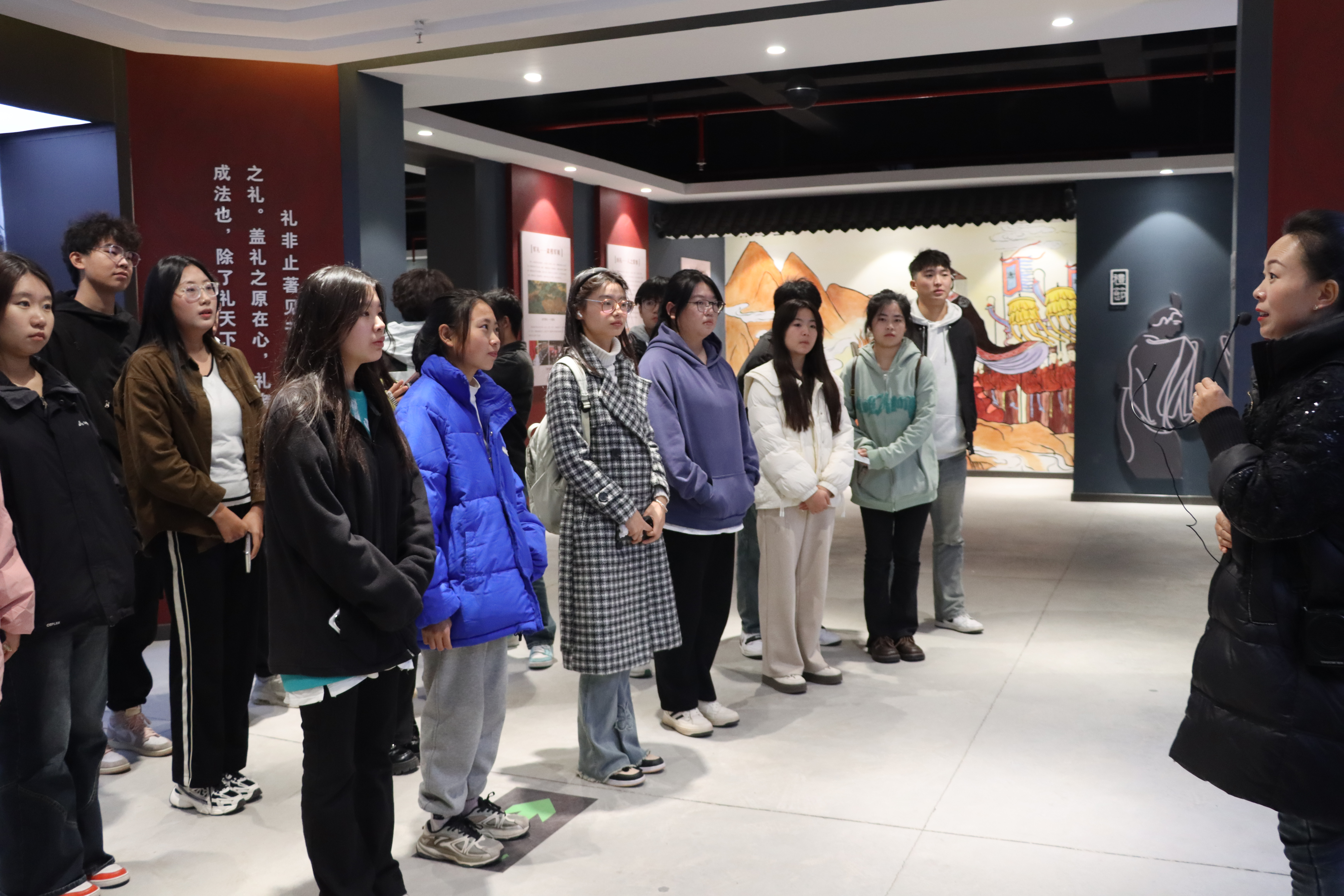 随后,师生们前往眉县六艺坊,参观了包括序厅、书馆、数馆、非遗陈列馆、礼馆、乐馆、射馆和御馆在内的多个场馆。这不仅是一次参观活动,更是一场深刻的文化体验与学习之旅。六艺坊的每个场馆都承载着不同的文化内涵与历史故事。通过图文并茂的介绍、珍贵的实物展示以及生动的影像资料,师生们仿佛穿越时空,亲身体验到了“六艺”——即礼、乐、射、御、书、数这六种古代教育的基本技能与知识体系的博大精深。