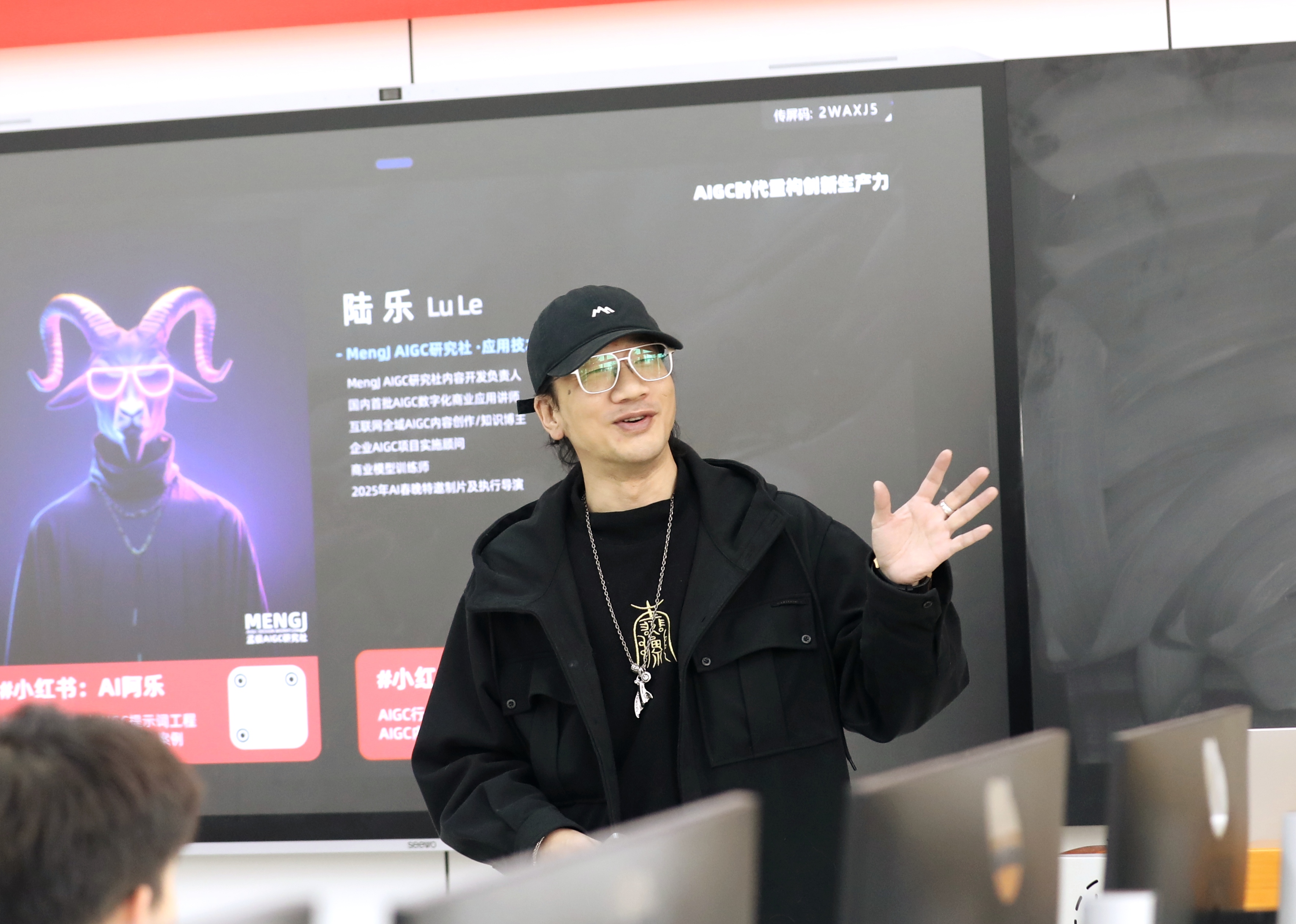 接下来的三天里,孟极设计咨询有限公司夏旭和陆乐两位老师分别基于各自研究领域为师生们授课。训练营课程体系包括培养AI思维意识、AIGC日常辅助应用实践、AIGC视觉生成工具认知与实践、AI重构设计创新行业、AIGC辅助设计创新工作流课题实践、AI图像控制工具认知等十余个板块,采用了内容分享与实践操作相结合的授课方式,确保师生们不仅能够理论联系实际,还能亲自动手操作,加深对AIGC技术的理解和应用。通过案例分析和互动讨论,师生们能建立正确的AI思维,理解AI在创意设计中的重要性和应用前景。三天两夜的训练营,内容充实,干货满满。同学们学习热情高涨,在老师的指导下,应用所学知识和技能,积极思考、创作和实践,在短期内较好的掌握了有关AIGC工具的使用方法和技巧,纷纷创作了满意的作品。