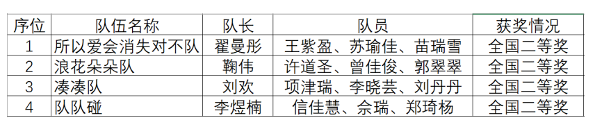 表1:获得第六届“浪潮铸远杯”智慧企业大数据分析与应用全国高校大赛全国二等奖的团队名单