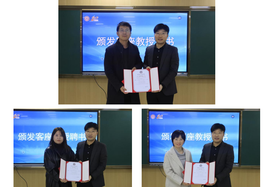 西安工商学院副校长程波代表学校为三位客座教授颁发了聘书。