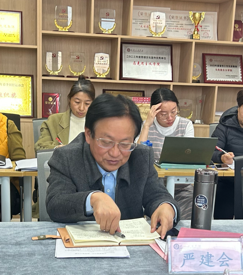 马克思主义学院院长严建会指出,思政课是落实立德树人根本任务的关键课程,学院将继续开展公开示范课教学观摩活动,充分发挥优秀教师引领示范作用,不断提升教师教学能力,讲深、讲透、讲活思政课,提高教学质量和水平。并对思政课教师对提出几点要求,严院长说,讲好思政课要有情怀、要充满自信、要弘扬教育家精神,从技能层面要精通教材,必须以中国特色社会主义取得的举世瞩目的成就为支撑,必须与中国传统文化相结合,必须注意授课方式、方法、目的,以习近平新时代中国特色社会主义思想为核心,最后,以数字技术进一步优化课程。