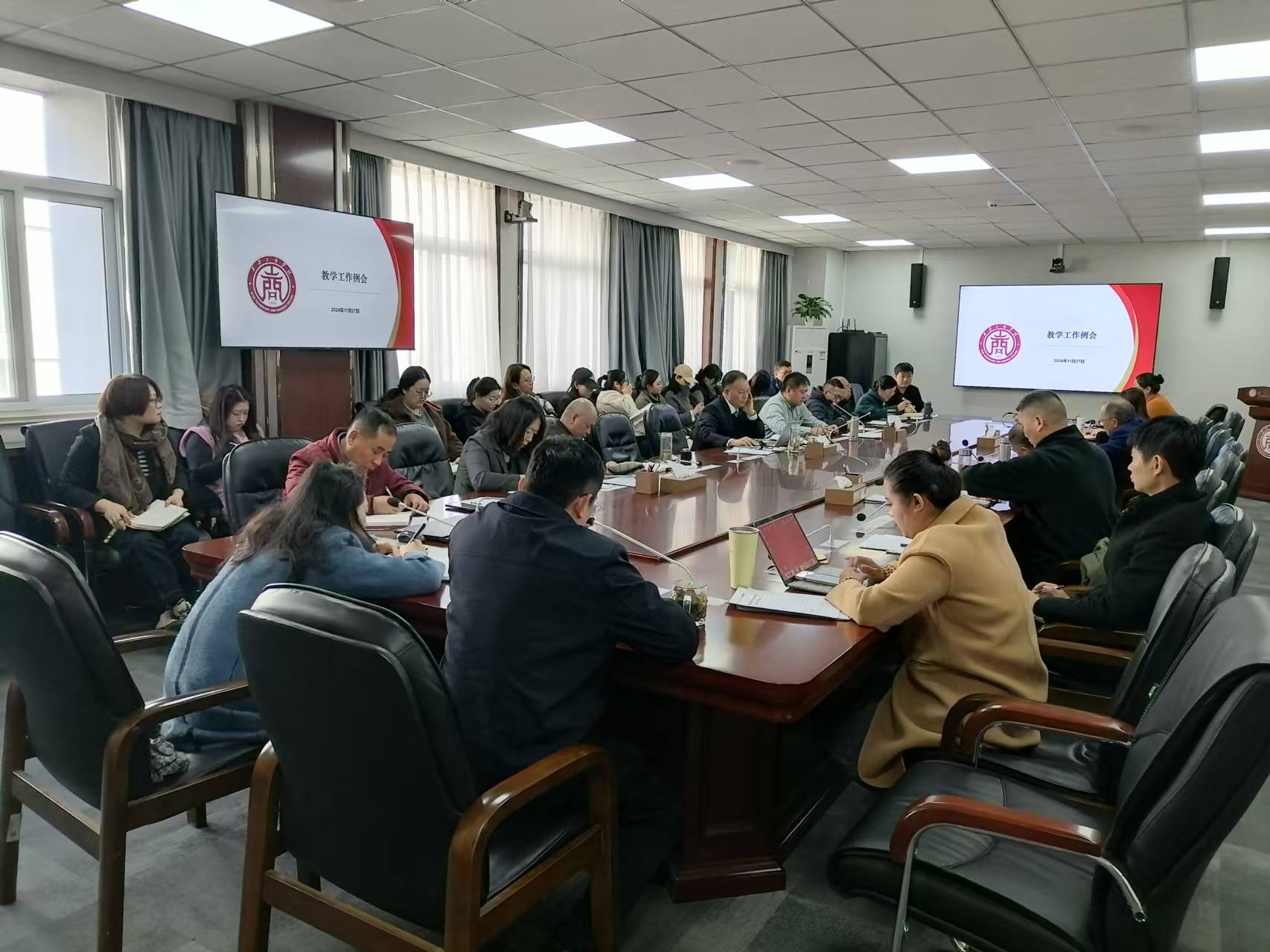 为进一步做好2024-2025学年第一学期教学工作,持续提升教学质量,部署相关工作。11月27日上午,学校召开教学工作会议。会议由校长廖民生主持,教务处处长刘洪鹏、副处长辛大欣、教学质量保障中心主任邸岚、科技处处长过仕明、各二级学院院长(执行院长)、教学副院长、党总支书记、教学秘书,教务处相关同志参会。