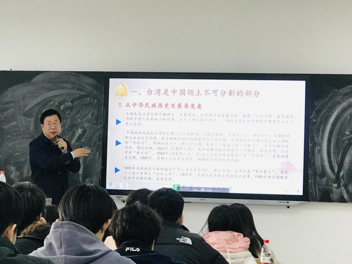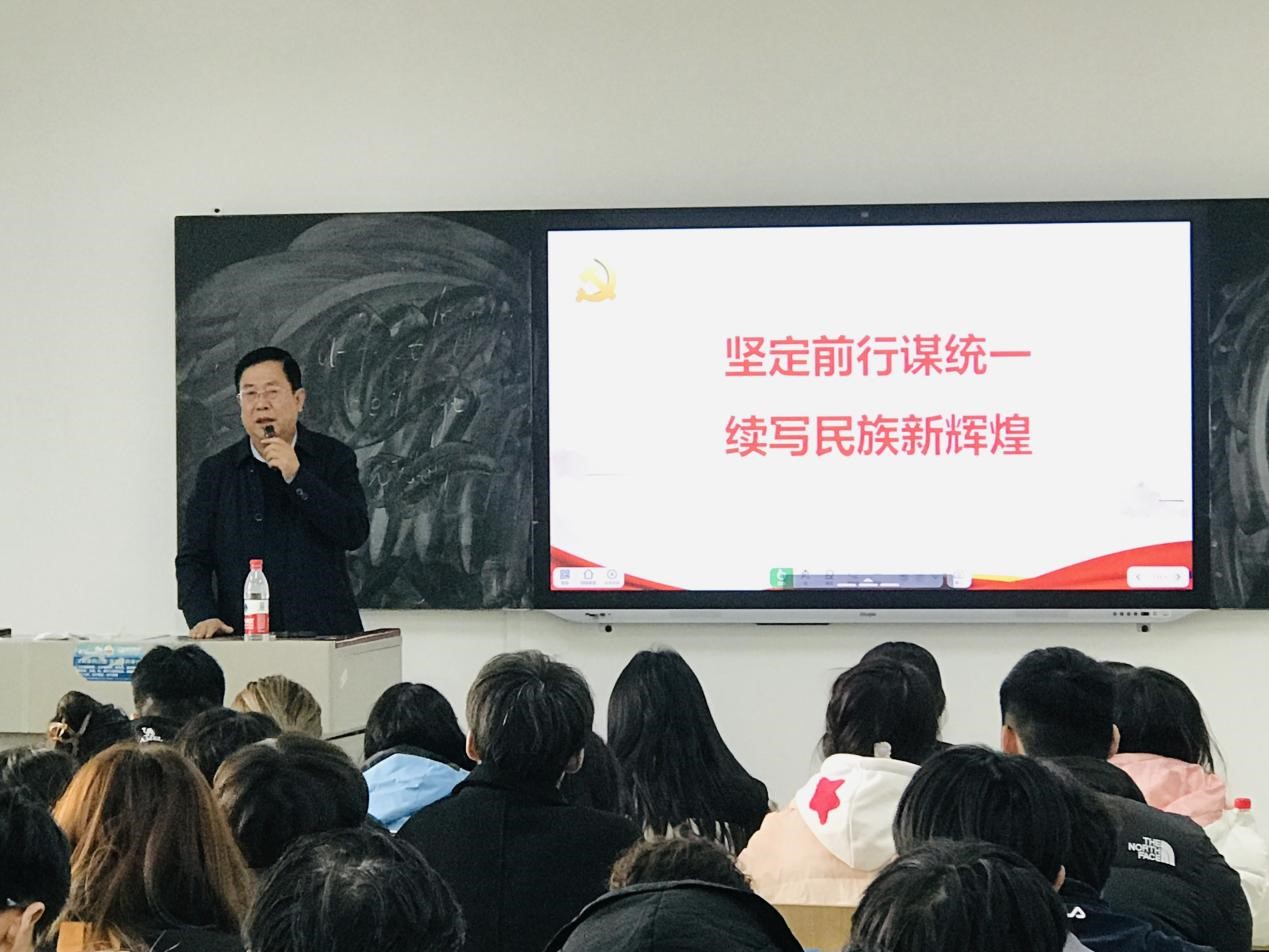 随后,田书记从台湾是中国领土不可分割的一部分、台湾问题的由来、中国政府解决台湾问题的基本方针、'台独”分裂图谋注定失败、携手同心为实现民族复兴而接续奋斗五个方面进行讲授,揭示了两岸同属一个国家、一个民族的历史事实,宣示了推进反“独”促统的坚定意志决心,展现了增进两岸同胞福祉利益的诚意善意,强调了筑牢中华民族共同体意识的重要意义。最后,田书记向全体青年发出了携手同心为实现民族复兴而接续奋斗的伟大号召,全体青年应当把握大势、秉持大义,把民族命运牢牢掌握在中国人自己手中,担负起时代赋予的使命和责任,为推进祖国统一进程贡献力量,为实现中华民族伟大复兴拼搏奋斗。