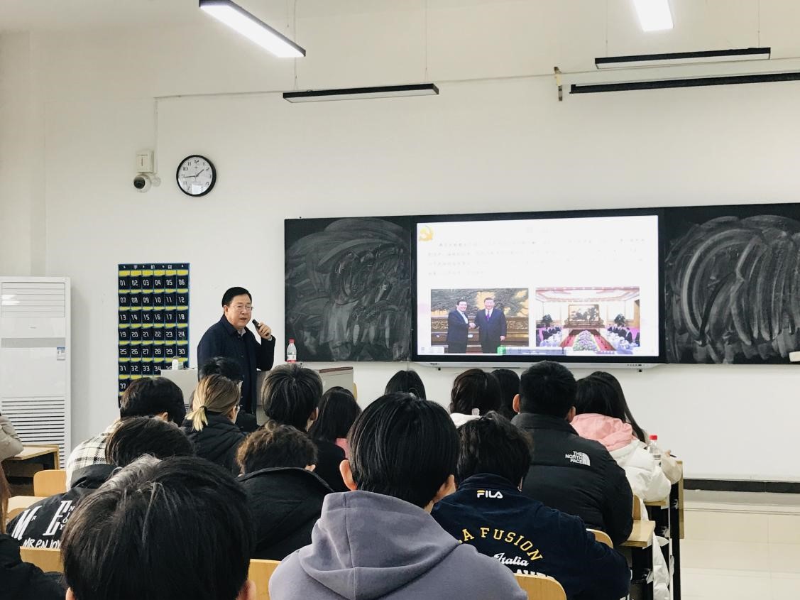 为深入学习贯彻落实党的二十届三中全会精神和习近平总书记对学校思政课建设的重要指示精神,学习好贯彻好宣讲好党的二十届三中全会精神,充分发挥思政课主渠道主阵地作用,将我校思政课建设落地落实落细,11月28日下午,西安工商学院校党委书记田伏虎深入《形势与政策》课堂,与思政课教师原潇菲共上一堂形势与政策课。