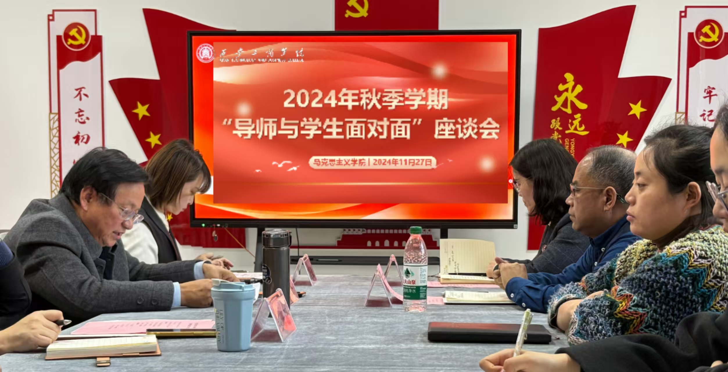 为深化学校全员育人机制,充分发挥校领导及教科研导师的引领作用,增进师生互动,11月27日马克思主义学院在1-402举办“导师与学生面对面”座谈会。紧扣学生中心,围绕“理想、信念、励志、成长”四大主题,全方位关照、服务并关注学生需求,旨在通过深入交流,全面助力学生多元化发展,成就未来栋梁之才。参加此次座谈会的有马克思主义学院院长严建会、副院长王珊珊、人文学院院长、人文学院副院长范诚梅、思想道德与法治教研室全体成员以及人文学院学生代表,会议由思想道德与法治教研室马星主持。