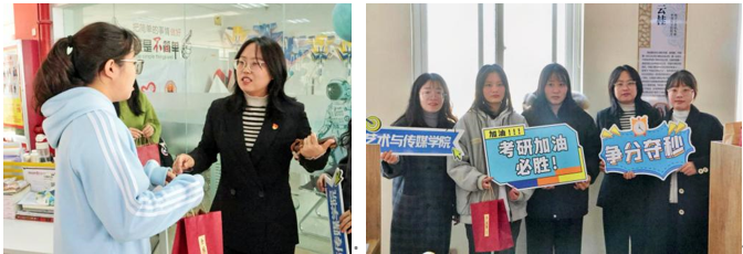 艺术与传媒学院的老师们不仅关注学生们的学习和心理状况,还为学生们送上祝福。这场考研送温暖活动,如同一束冬日里的暖阳,让他们带着老师们的关怀与鼓励,必将以更加坚定的信念和饱满的热情,勇敢的迎接考研的挑战,向着梦想的彼岸奋力前行。