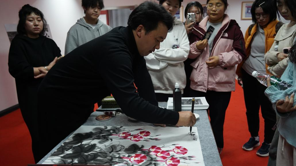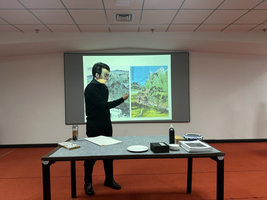 本次讲座通过主讲嘉宾王录山先生分享自己的职业经历、作品展示及创作理念解析,使学生更深入地理解了现代绘画艺术的特点和价值,提升了个人的艺术认知水平和鉴赏能力。王录山先生在分享完自己的艺术创作之路和学习方法之后,在创作演示环节,还现场展示了水墨画的绘画技巧。最后的交流沟通环节,王录山先生针对现场聆听学生们的提问,进行了答疑解惑。