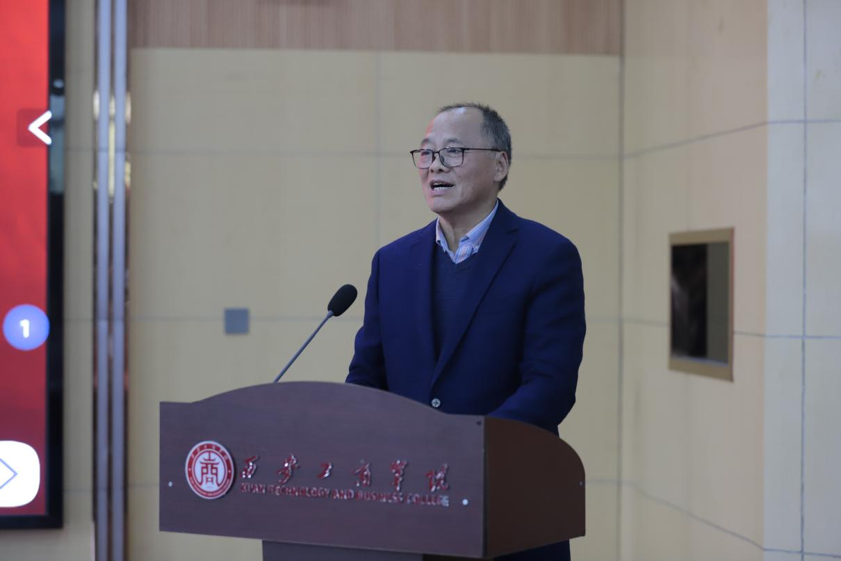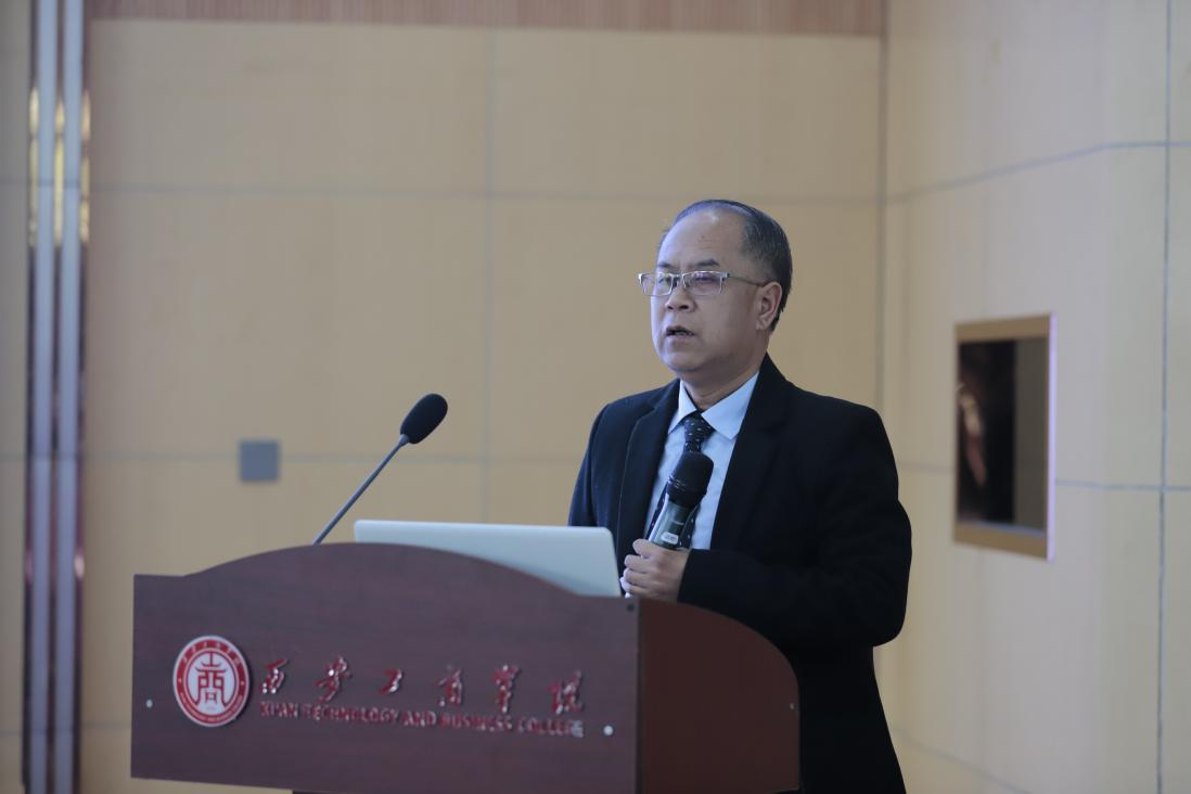 为了深入贯彻党的二十届三中全会精神,学习习近平总书记关于科研工作的重要指示,落实教育部《关于加强高校有组织科研推动高水平自立自强的若干意见》的要求。喜迎学校20周年校庆,展示学校在科研领域的最新成果和前沿动态,彰显学校的学术实力和科研水平,营造浓厚的科研氛围,激发师生的科研热情和创新精神。12月4日,我校在学术报告厅举办“风华二十载,一起向未来”校庆系列学术报告。西安工商学院副校长程波、人事处处长闫海霞、教务处处长刘洪鹏、人文学院学院副院长原朝阳、范诚梅参加了报告会。报告会由科研处处长过仕明主持。