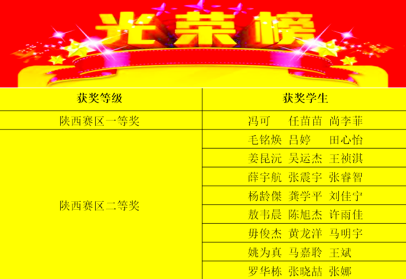 【学生获奖等级及名单】