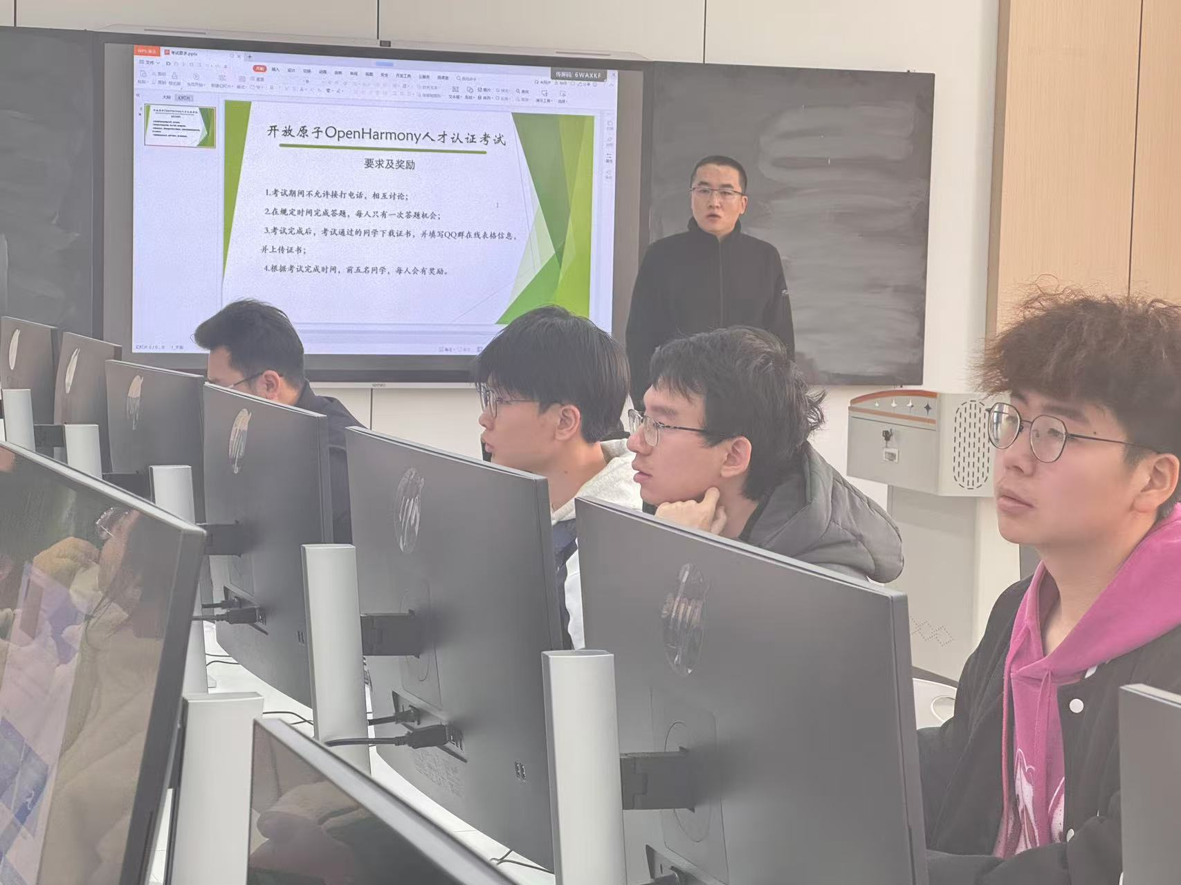 为精准对接企业用人标准,切实检验学生学习成果,活动特别引入企业认证环节。12月6日,实验楼304室气氛庄重热烈,一场意义非凡的开放源子OpenHarmony人才认证考试在此拉开帷幕。