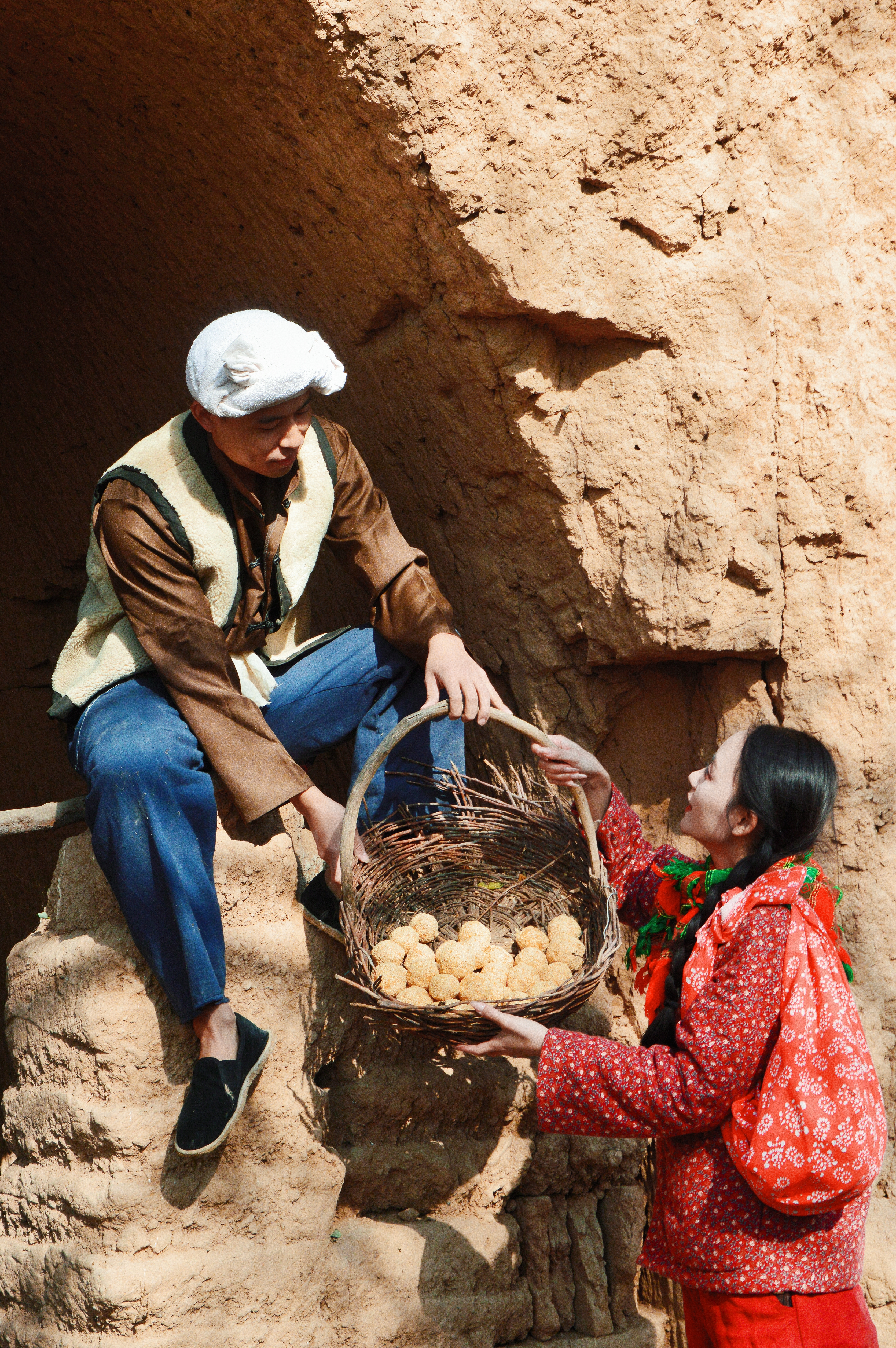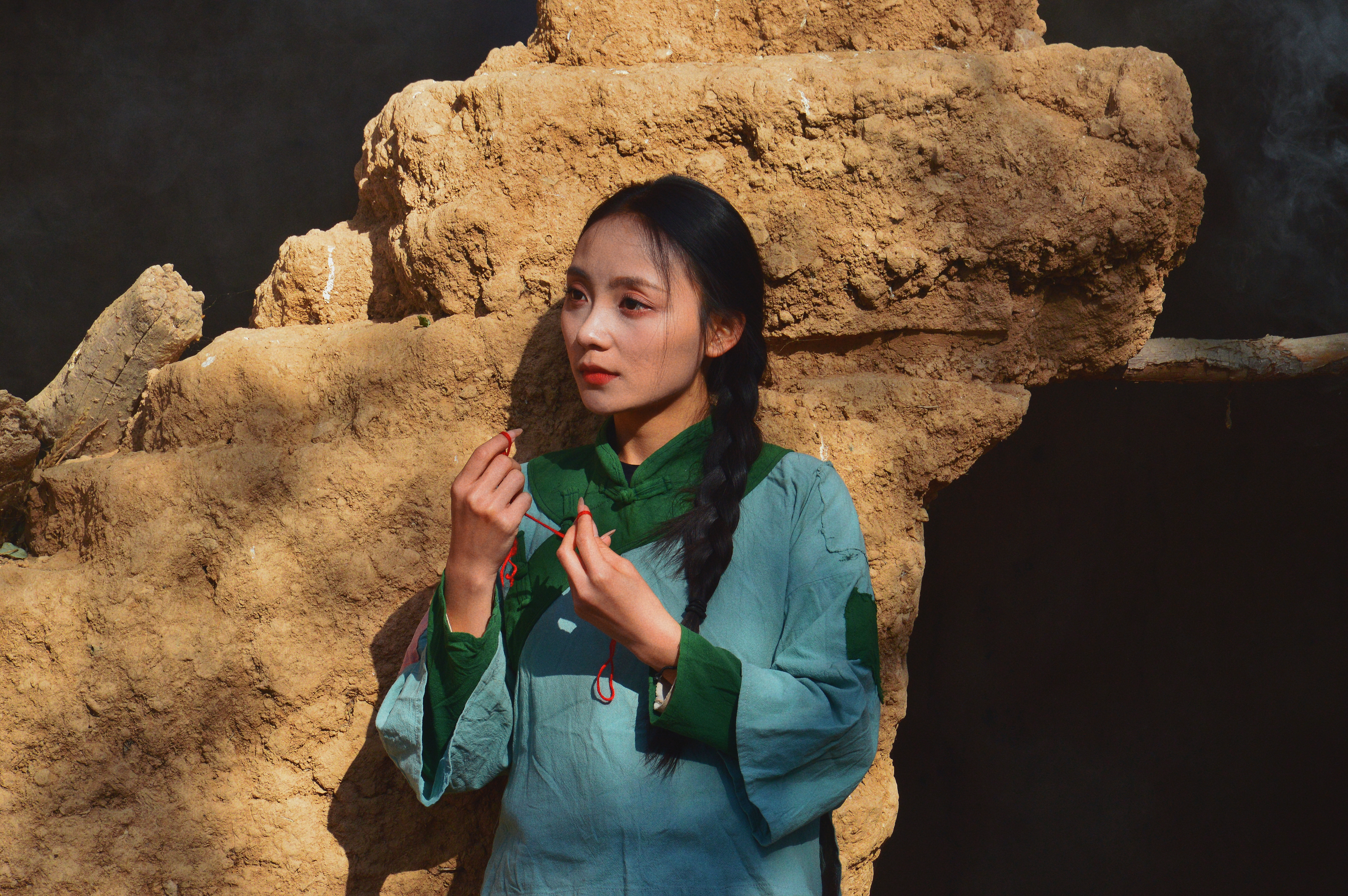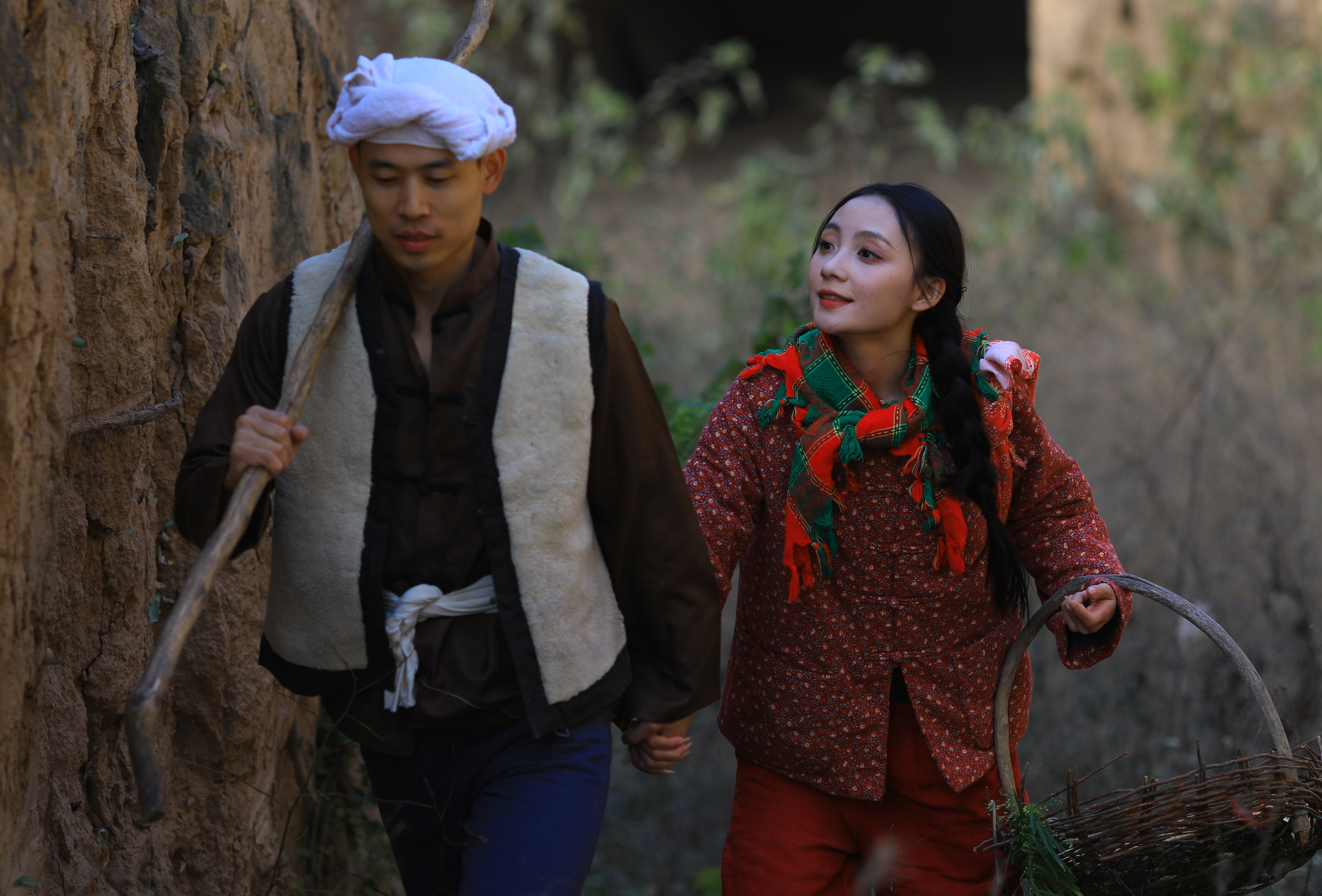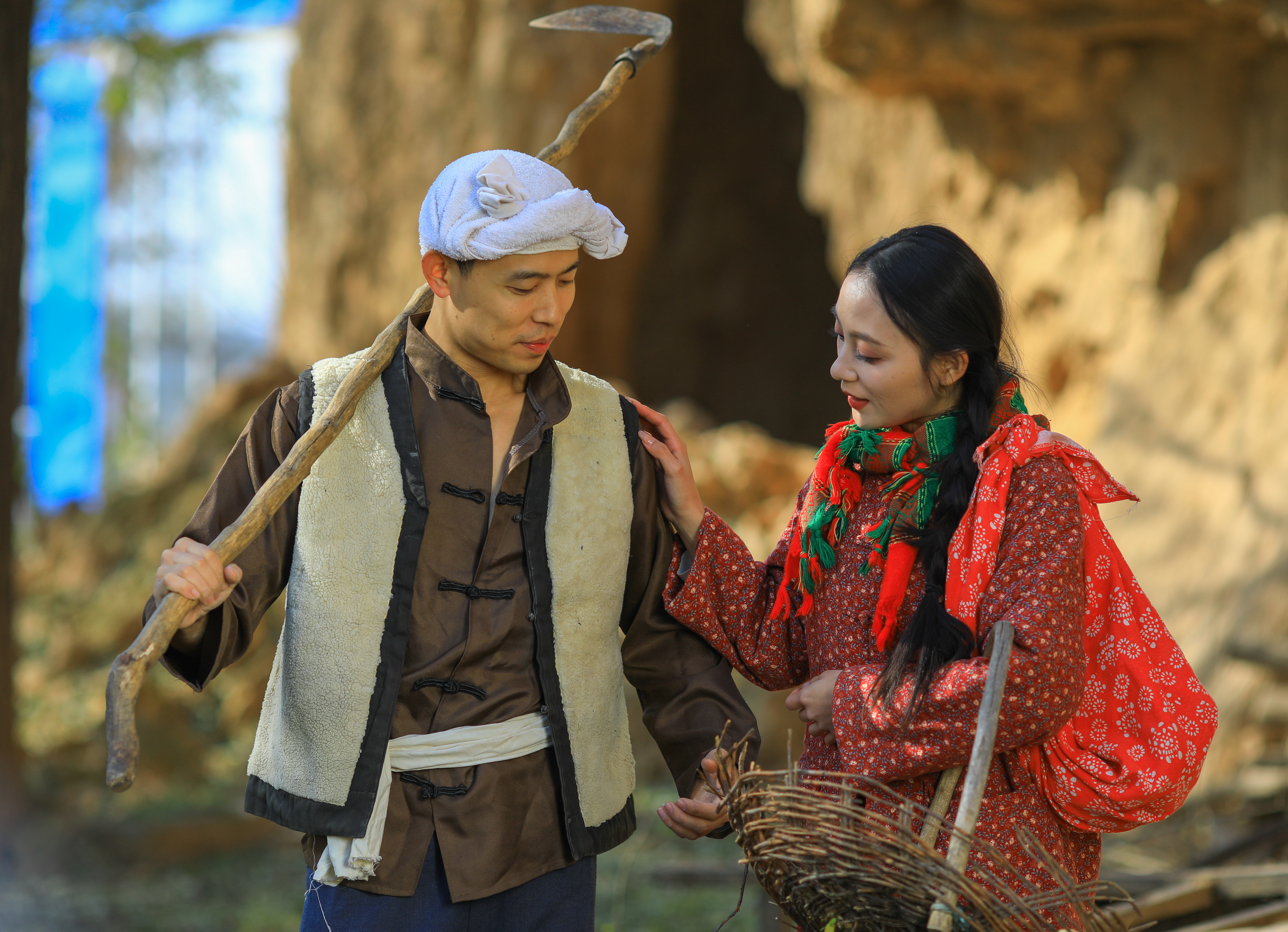 此外,同学们还拍摄了电视剧中九儿、阿宝等经典形象。在镜头前,他们或温婉、或坚韧、或豪放,将角色的性格特点展现得淋漓尽致。阿宝扛着锄头九儿拿着簸箕一起去劳作时,大家在拍摄过程中都能感受到他们的幸福和甜蜜。底层人民都是在劳动中寻找快乐,可以看出即使生活条件不好,阿宝和九儿也可以寻找很多快乐时光。