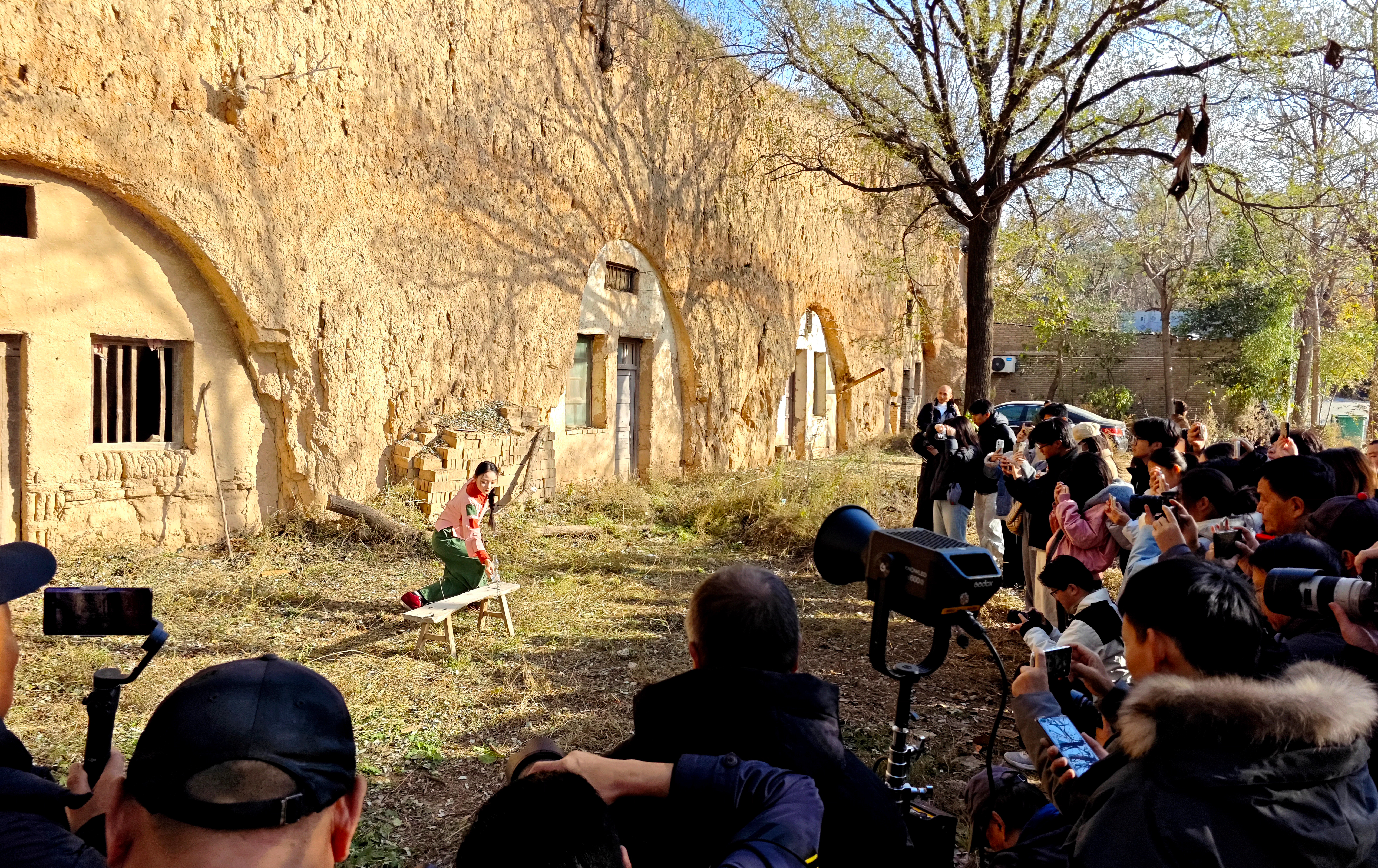 大家深入民俗村,在老师的带领下寻找那些最具代表性的拍摄场景。同学们看到了最具代表性的地坑窑和崖窑等窑洞建筑,听当地人介绍这种窑洞不仅冬暖夏凉,造价低廉而且绿色环保,坚固耐用。这种窑洞建筑已有约4000年的历史,同学们还看到张家窑整体布局错落有致,窑洞建筑与自然环境和谐共生。