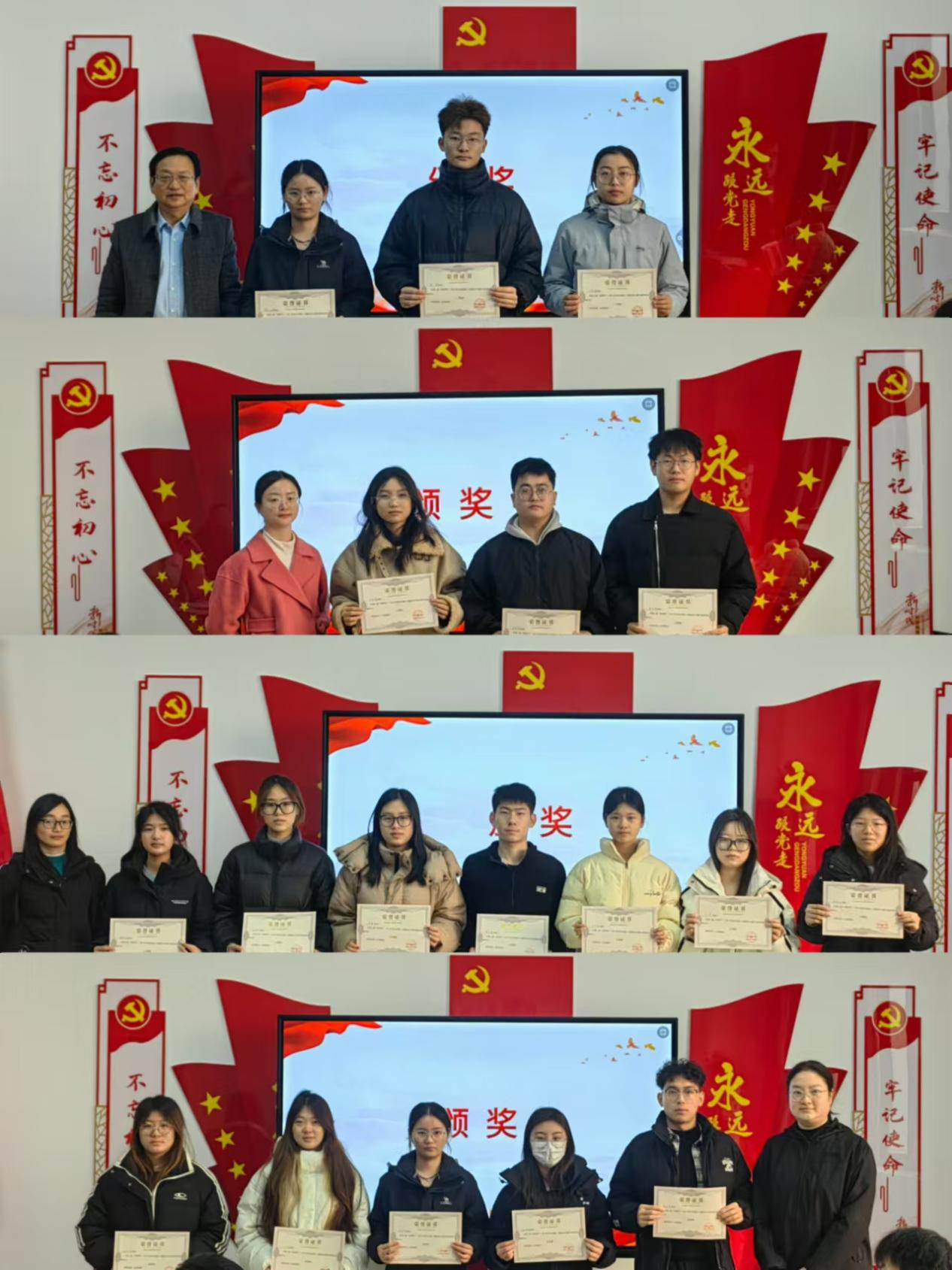 活动第三项,颁奖。此次大会依次颁发了优秀奖、三等奖、二等奖、一等奖,以表彰在此次活动中取得优异成绩的同学们,每一份表彰决定都凝聚着获奖者的汗水和智慧,他们的作品不仅展现了深刻的思想内涵,也体现了卓越的文学才华。