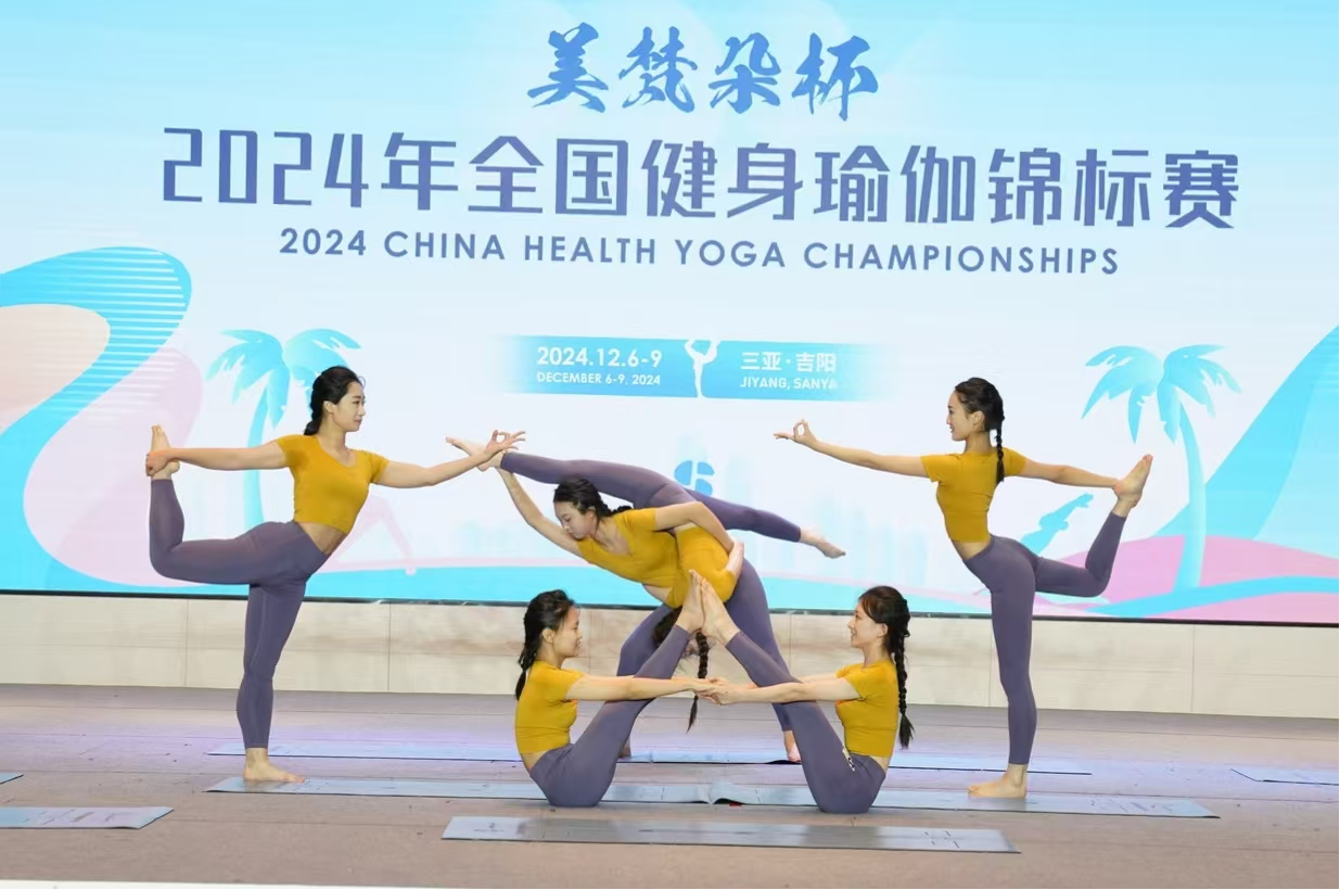 2024年全国健身瑜伽锦标赛于12月7至8日在三亚市吉阳区成功举行并顺利完赛。赛事吸引来自全国近40支代表队的200余名运动员参与。在我校领导的大力支持和教练游春花、李娜艳指导下,经过三天的激烈角逐,我校集体项目取得历史性突破,第一次在国赛中挺进决赛,最终获得了院校组集体项目第八名的成绩。段位组也获得了三段三等奖2名、四段三等奖2名、五段三等奖2名。同时,还荣获了优秀代表队称号。