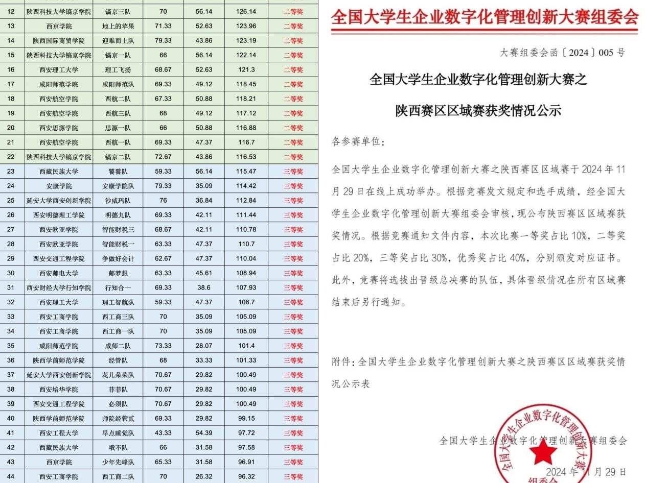 图3全国大学生企业数字化管理创新大赛之陕西赛区区城赛获奖情况