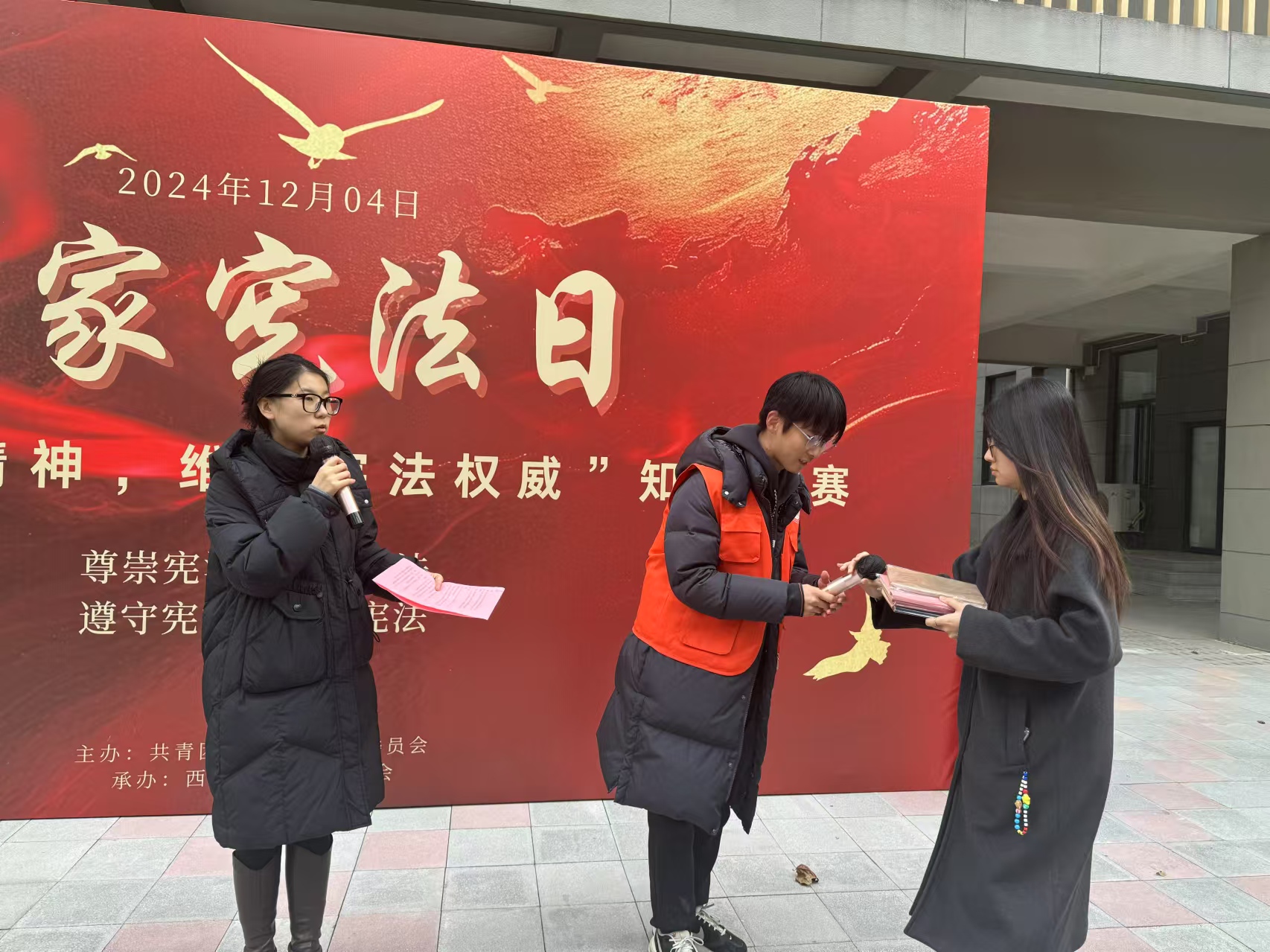 为深入学习贯彻党的二十大、二十届三中全会和全国教育大会精神,加强宪法法治教育,根据教育部办公厅下发文件要求,西安工商学院学生会于2024年12月4日上午8:30在图书馆西侧举办宪法晨读活动,组织学生朗读宪法知识,共同宣誓誓词。