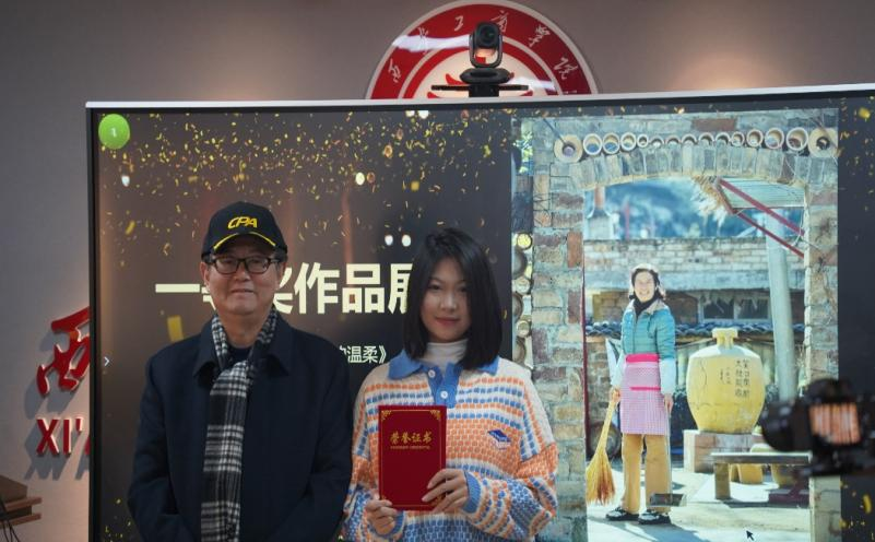 典礼伊始,主持人介绍了出席领导和嘉宾,并向点评专家与师生展示了本次摄影展中的获奖作品。西安理工大学特聘教授巩志明为摄影采风活动作品获奖者一等奖学生颁奖,人文学院教学副院长原朝阳教授、陕西省京剧院王斌先生为3名二等奖学生颁奖。新闻传播系系主任宋莹老师为3名三等奖学生颁奖。