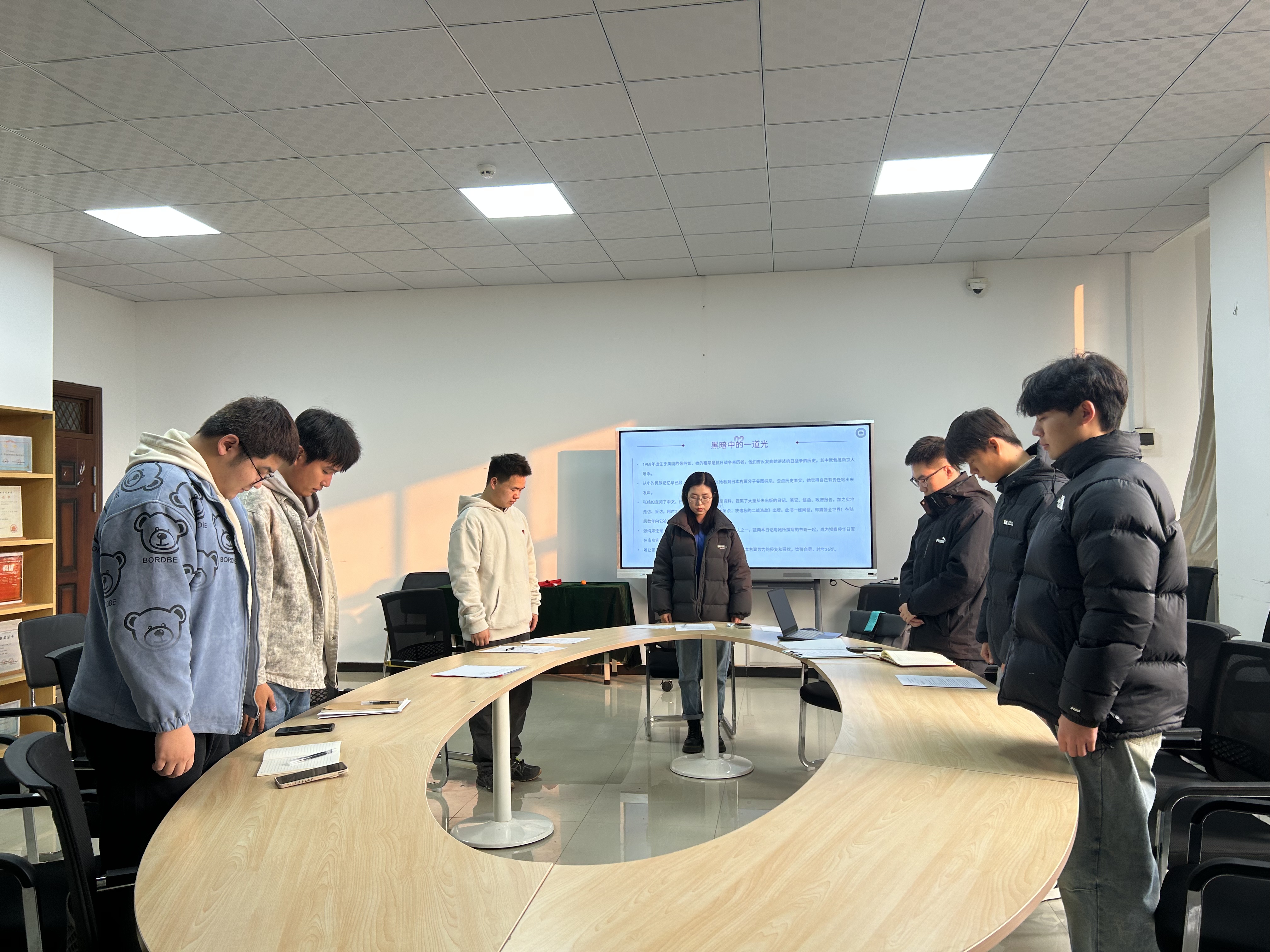 紧接着,党支部书记龚子腾从南京大屠杀爆发的历史背景讲起,详述侵略者的狰狞野心与残暴手段;深入剖析当时国力孱弱、民族危在旦夕的困局;进而延展至无数革命先辈不屈抗争、前赴后继,以热血身躯铺就新中国成立之路;落脚当下,强调学生党员要从历史汲取教训,以“强国有我”之姿投身民族复兴伟业,在学习上攻坚克难,在未来工作中发光发热,守护盛世安宁。