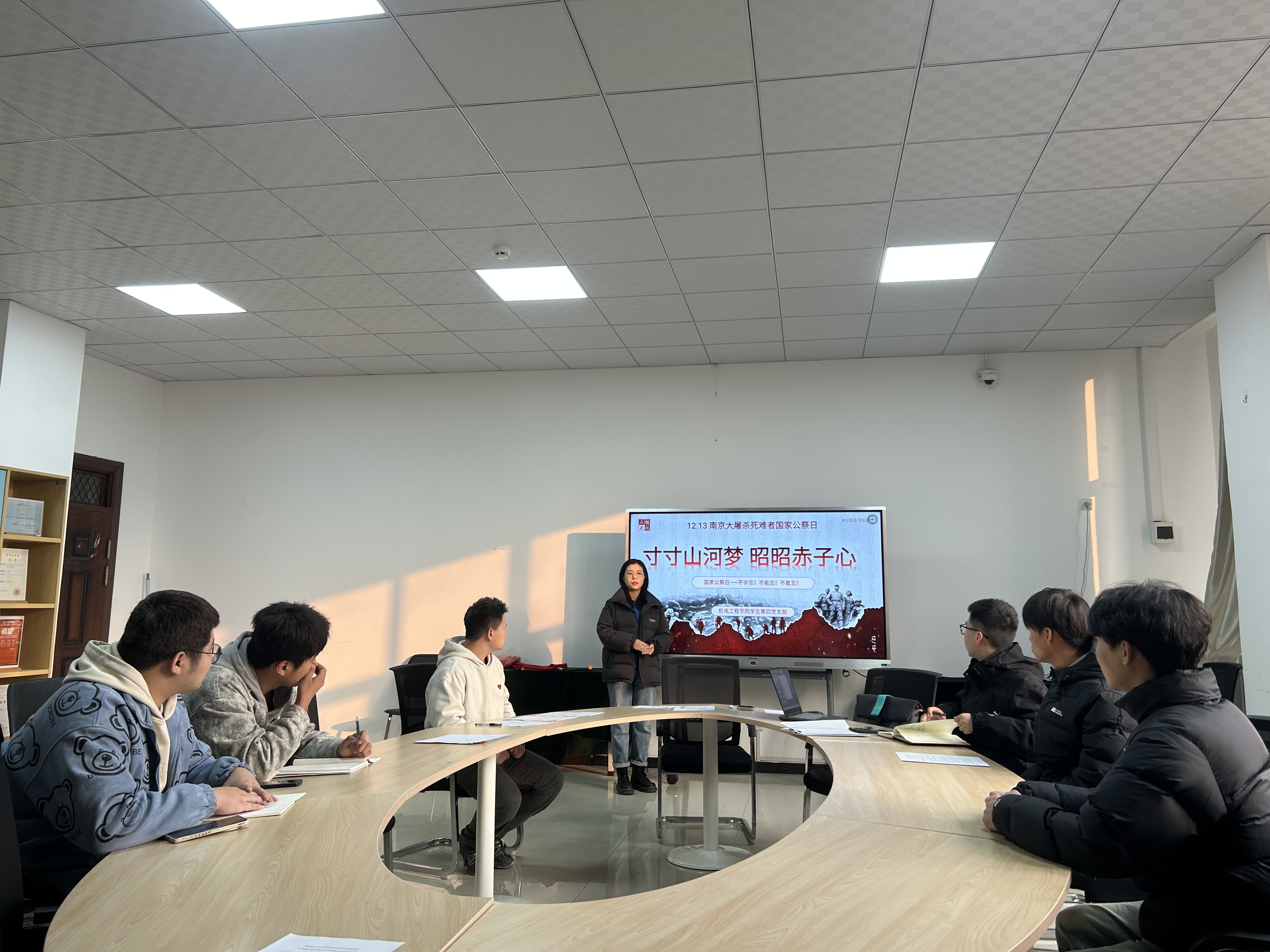12月13日是第11个南京大屠杀死难者国家公祭日。为缅怀南京大屠杀的无辜死难同胞,铭记历史、警示未来,弘扬民族精神,激发爱国热情,12月13日下午,机电工程学院学生第四党支部于实验楼301开展了国家公祭日主题党日活动,全体党员齐聚一堂,庄重寄托哀思,汲取奋进力量。