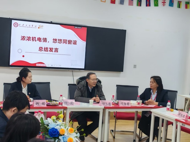 接下来的校友座谈环节中,校友们纷纷发言,分享了自己的求学经历、工作心得以及对母校和机电工程学院的深厚情感。优秀校友王荣,目前就职于河北工业大学机械工程学院,职称为副教授。她深情回忆了自己在西安工商学院机电工程学院的学习时光,对母校的培养和关怀表示了由衷的感谢。同时,她也感慨于母校在制度和设施上的不断变革与进步,为母校的发展感到自豪。优秀校友黄东,现就职于西安市局指挥中心,他同样表达了对母校的深厚感情。黄东表示,母校不仅教会了他专业知识,更培养了他坚韧不拔、勇于担当的精神。他为母校取得的辉煌成就感到骄傲,并祝愿母校在未来能够继续发扬光大,为社会培养更多优秀人才。优秀校友梁天,在宝鸡市金台区委员会办公室工作,他回忆起在母校度过的点点滴滴,深感感动和感激。梁天表示,母校给予了他宝贵的知识和人生经验,让他在工作中能够不断进步和成长。他衷心感谢母校的培养和老师的教诲,祝愿母校未来更加美好。其他校友纷纷表示,母校不仅教会了他们专业知识,更培养了他们的综合素质和解决问题的能力。他们感激母校的培育之恩,也为学院近年来取得的成就感到自豪。