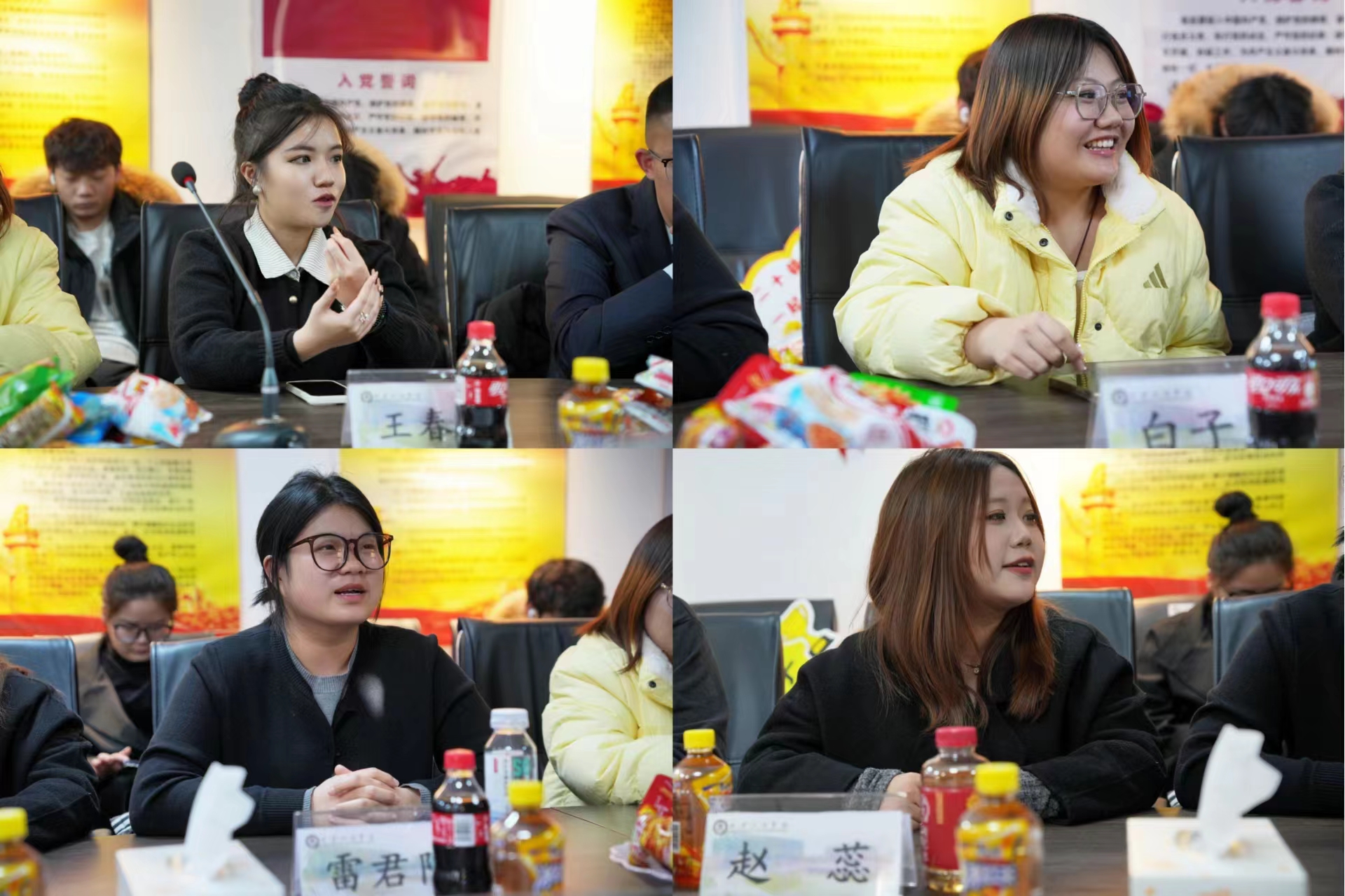 交流环节中,校园代表们分享了自己毕业后的学习工作经历、人生感悟以及对母校的感激之情。王春燕分享了工作之后的成长经历和感悟,激励在座的学弟学妹们珍惜时光,勇往直前。白子玉分享了她考研的心路历程和读研感受,深情回忆在校园的美好时光,对学院的悉心培养表达了诚挚的感激之情,她表示母校的文化和精神是她不断前行的动力源泉。雷君阳回顾了在校园的学习和生活经历,对学院和各位老师的辛勤付出和培养表示感谢,表达了对那段岁月的无限怀念。赵蕊表示,虽然毕业后大家走上了不同的工作岗位,有人工作,有人升本也有人读了研究生,但都始终牢记母校的教诲,努力拼搏,为社会做贡献。校友们的发言充满了正能量,不仅展现了个人成长的精彩篇章,也反映了学院教育成果的社会贡献。