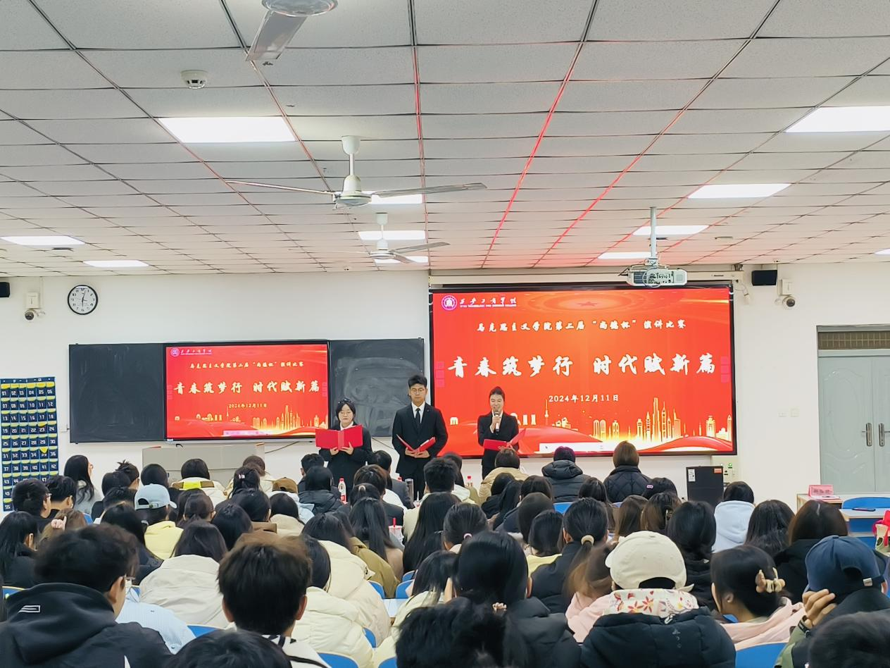 为深入推进大思政课品牌建设,点燃学生理论学习激情,马克思主义学院于2024年12月11日在2-313教室成功举办第二届“尚德杯”演讲比赛。马克思主义学院院长严建会 、人事处处长闫海霞、中国近现代史纲要教研室主任徐道良、四史+实践教研室主任李丹、思想道德与法治教研室主任马星以及马克思主义学院青年教师出席本次活动。