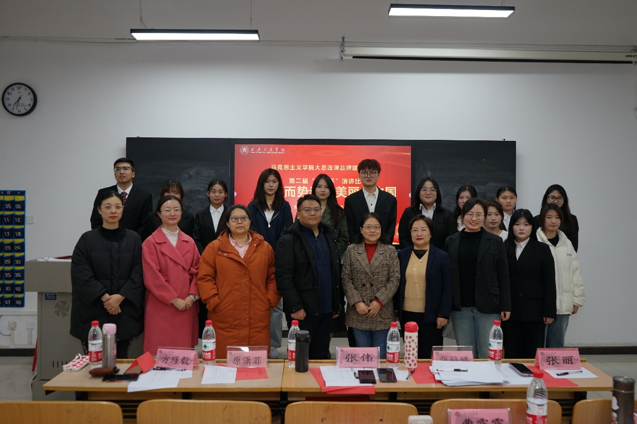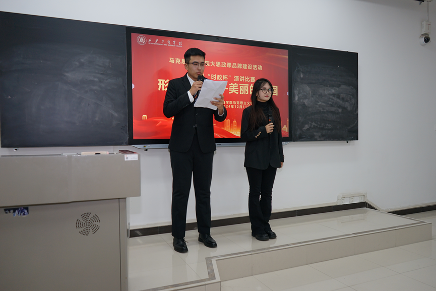 为让越来越多的学生及时了解国家现实,关注中国腾飞,把握时代脉搏,积极为祖国现代化发展建言献策,培养青年的政治参与意识与主人翁精神,马克思主义学院于12月11日晚上6点在1-409 成功举办第二届“时政杯”演讲比赛。作为马克思主义学院“形势与政策”教研室的特色实践教学活动,此次比赛吸引了众多学生的热情参与。