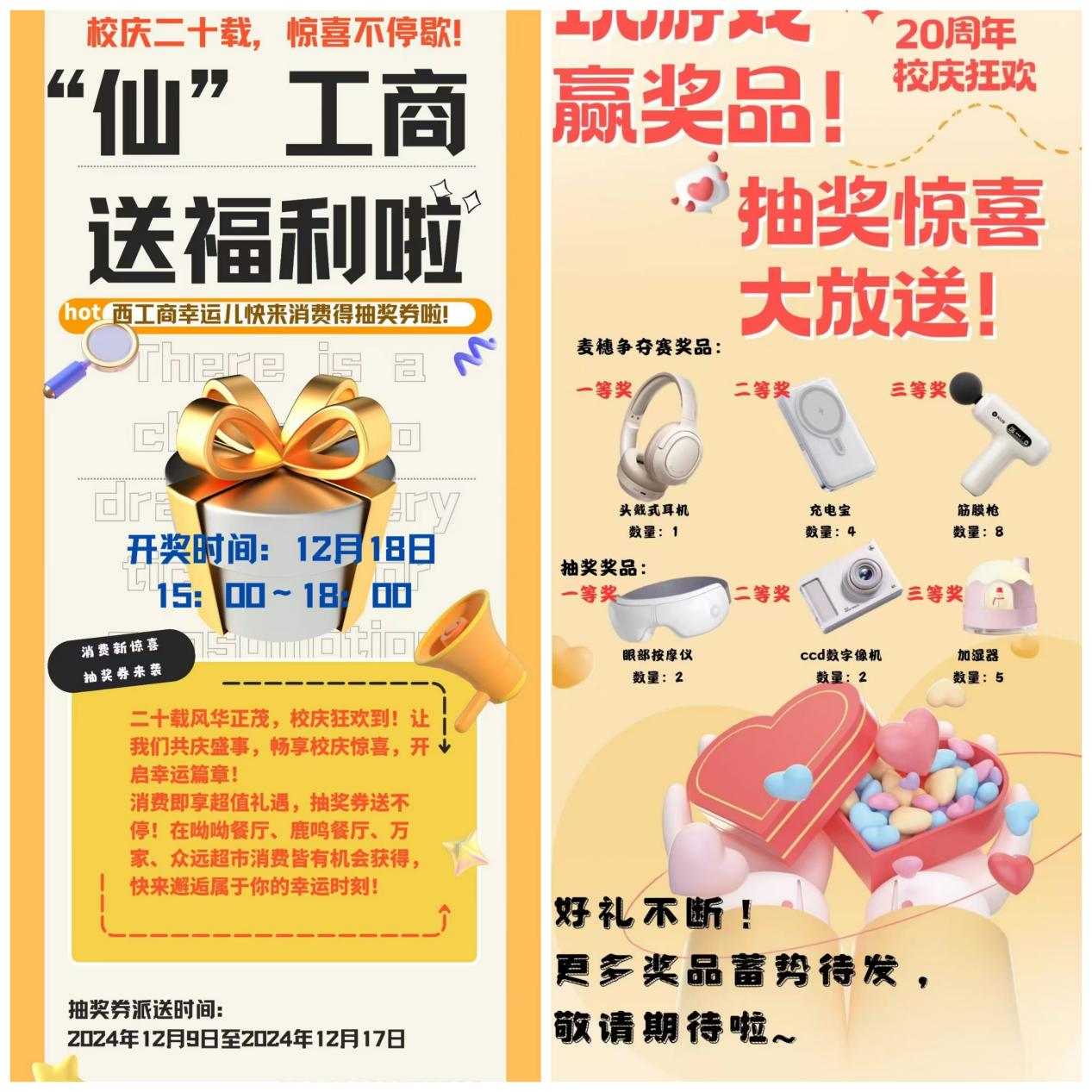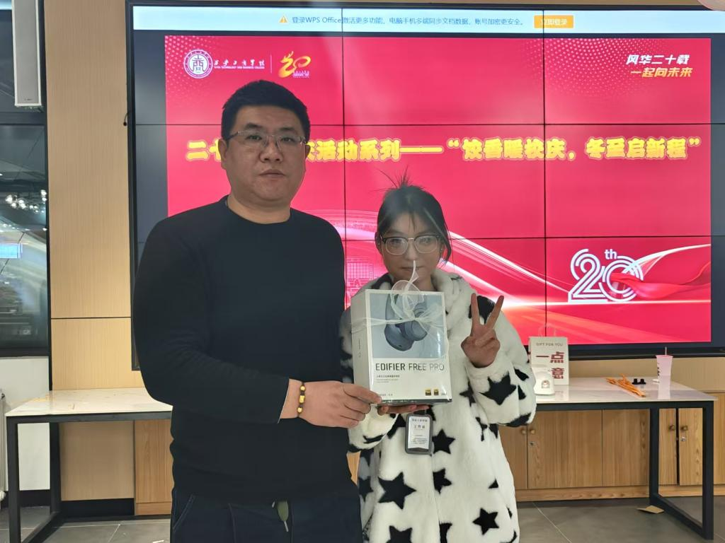 活动在学生们热情奔放的舞蹈和校团委书记陈博热情洋溢的致辞中拉开帷幕,随着悠扬的琴声在空气中轻轻回荡,以及副校长程波亲手切开象征着校庆喜悦与希望的蛋糕那激动人心的一刻,整个活动瞬间被推向了高潮。在主持人宣布活动进入下一精彩环节时,师生们积极参与了丰富多彩的互动项目。从就餐满意度问卷调查到亲手包饺子体验,从美食品鉴到激动人心的消费抽奖,再到抖音平台上的热烈评论,每一个环节都充满了欢声笑语。通过这些互动,幸运儿们赢得了诸如头戴式耳机、无线充电宝、筋膜枪、眼部按摩仪、CCD数字相机、精美加湿器以及就餐代金券等丰厚奖品,现场气氛热烈非凡。