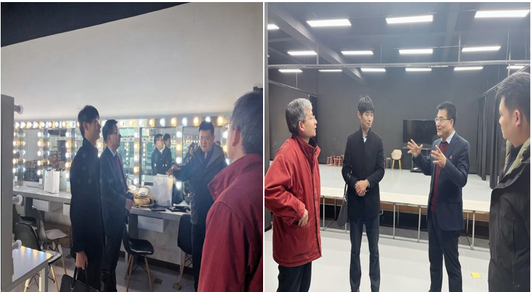在西安外国语大学艺术学院表演系主任陈乃嘉的精心安排下,参观了“丝绸之路”表演创作工作坊、表演训练形体室、影视化妆室。调研组对工作坊的创作流程、实验室功能、丝绸之路文化的传承与创新有了全面的了解。