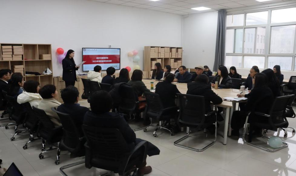 为深入学习贯彻党的二十大和二十届三中全会精神,落实立德树人根本任务,进一步提高教师教学素养、业务水平和工作能力,加强教师队伍建设,做好年度工作总结和未来工作规划,在不断总结中知得失,在反思中找问题,在分享中析差距,在学习中悟成长,经济与管理学院于12月19日在2-502会议室召开2024年专职教师述职会议。经济与管理学院特聘专家王军生教授、经济与管理学院执行院长张雪鹏、经济与管理学院院长助理郭鹏及全体专职教师共同参加会议。会议由经济与管理学院骨干教师杨易达主持。