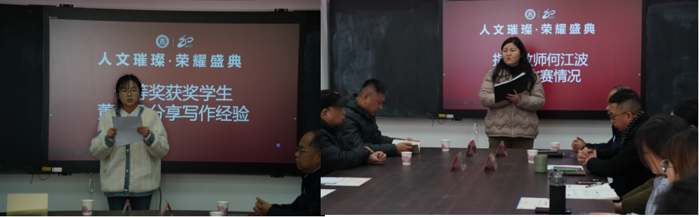 一等奖获奖者董一帆同学和优秀指导教师何江波分别进行了获奖感言分享和比赛活动工作总结。