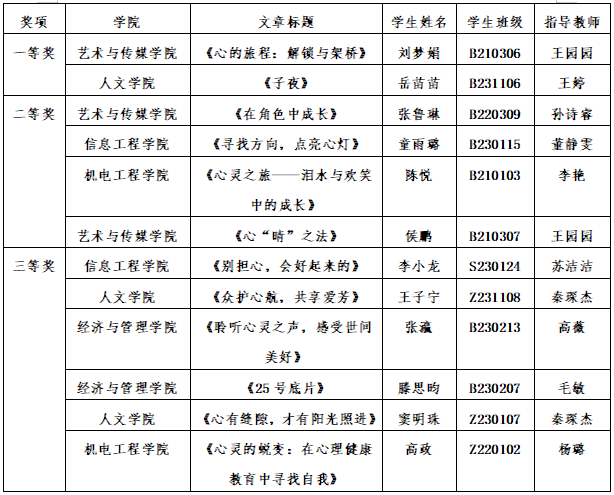为深入了解我校大学生心理健康教育与咨询工作成效,进一步推进大学生心理咨询服务工作研究与交流,同时引导大学生提升自我觉察力与感受性,积极关注心理健康。4月18日,大学生心理健康教育中心开展西安工商学院大学生“心相遇 爱同行——心理健康伴我成长”主题征文活动。