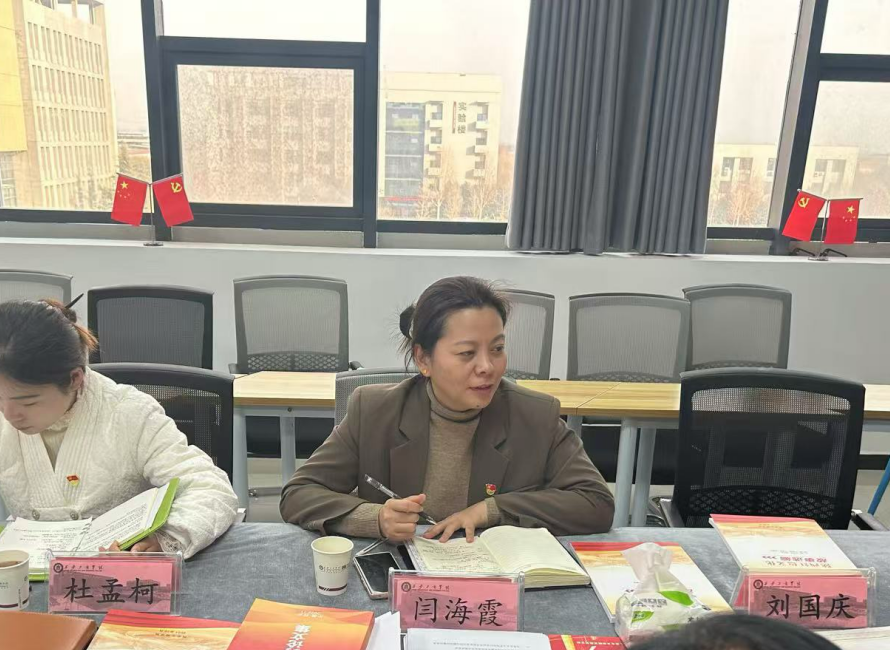 随后,党委教师工作部部长、人事处处长闫海霞对学院党支部工作取得的成绩表示肯定,并从党建和思想政治工作、意识形态工作等方面作出重要指示。她强调,广大教师要坚持不懈用习近平新时代中国特色社会主义思想铸魂育人,落实好立德树人根本任务,要通过扎实开展党纪学习和师德师风教育,不断加强新时代教师队伍建设,提高教师队伍的战斗力、凝聚力和向心力,推动教育事业高质量发展。