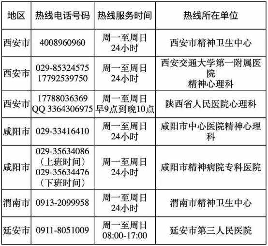 (二)陕西省心理援助热线